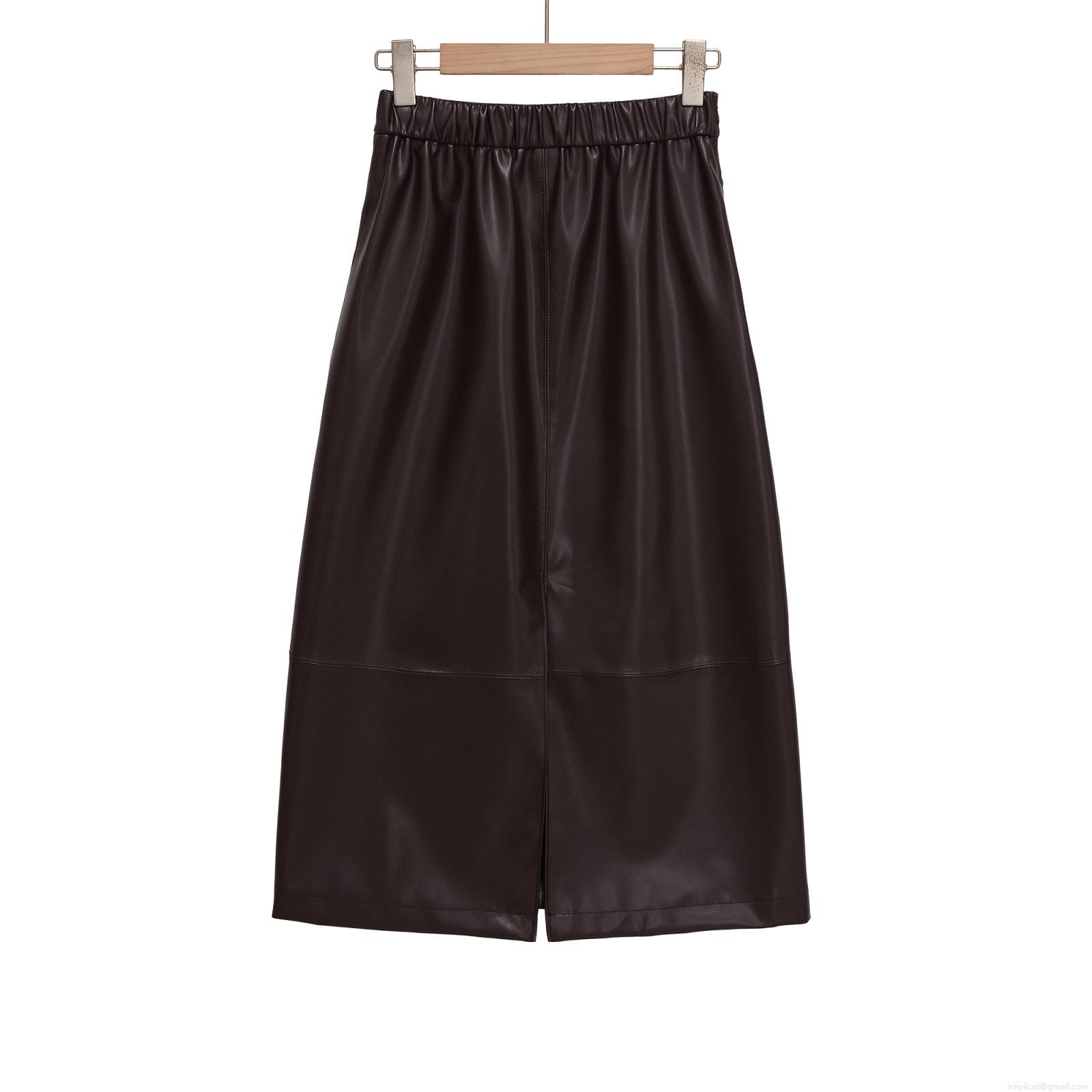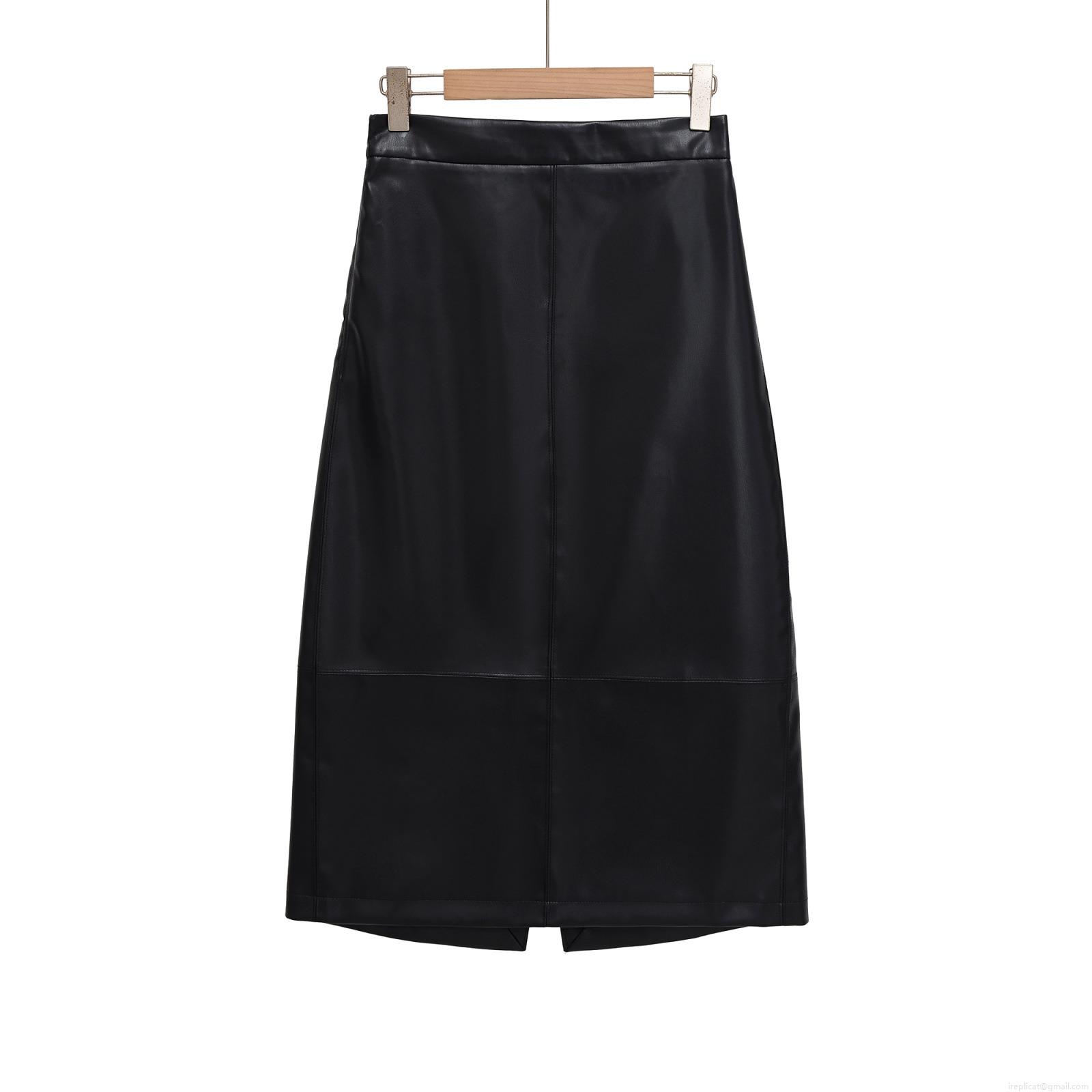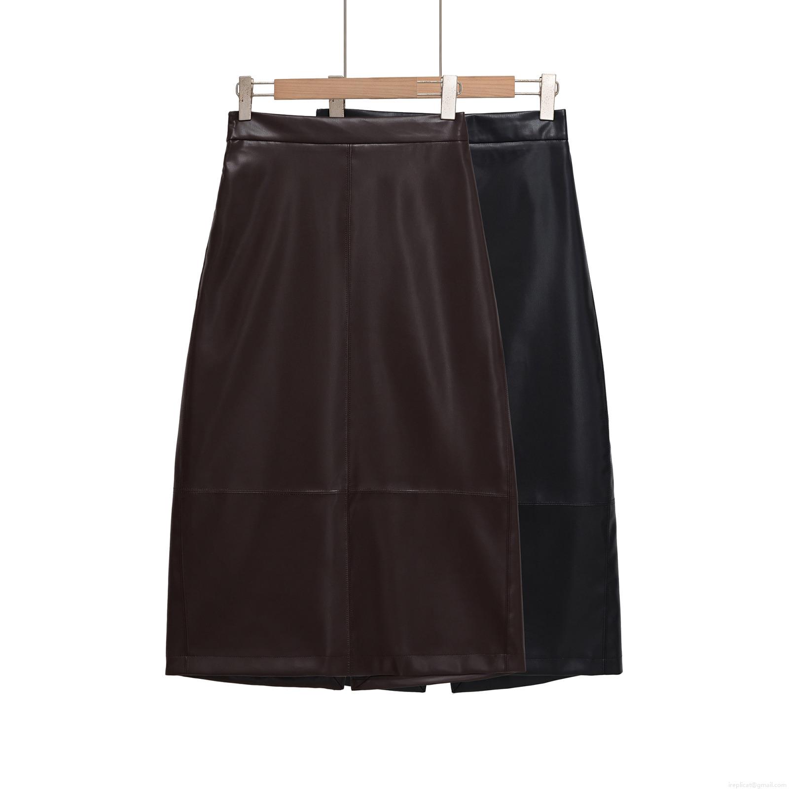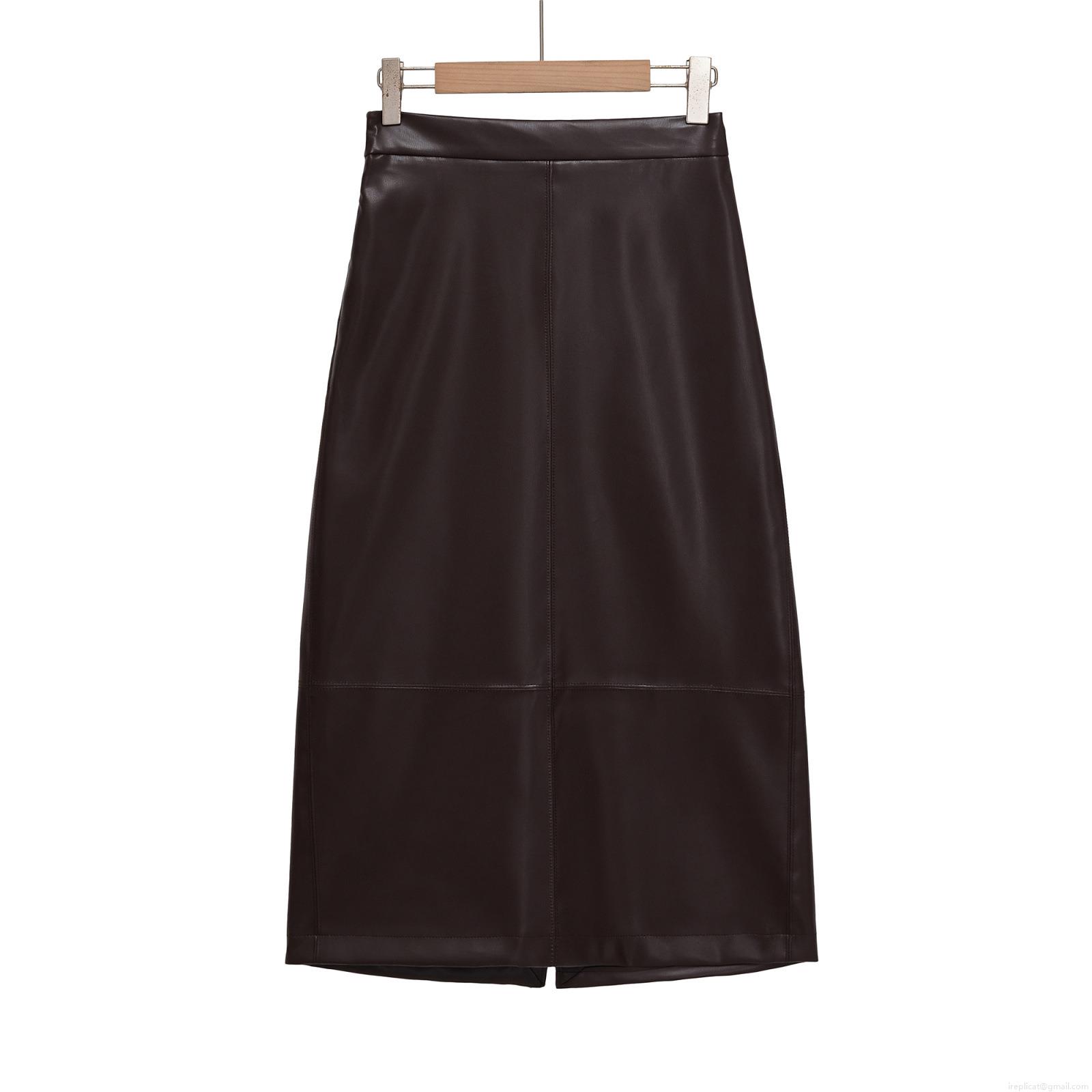 • Women's Sexy PU Leather Midi Skirt High Waist Solid Color Back Slit Bodycon Pencil Skirt Faux Leather Autumn Winter Streetwear Skirt For Women