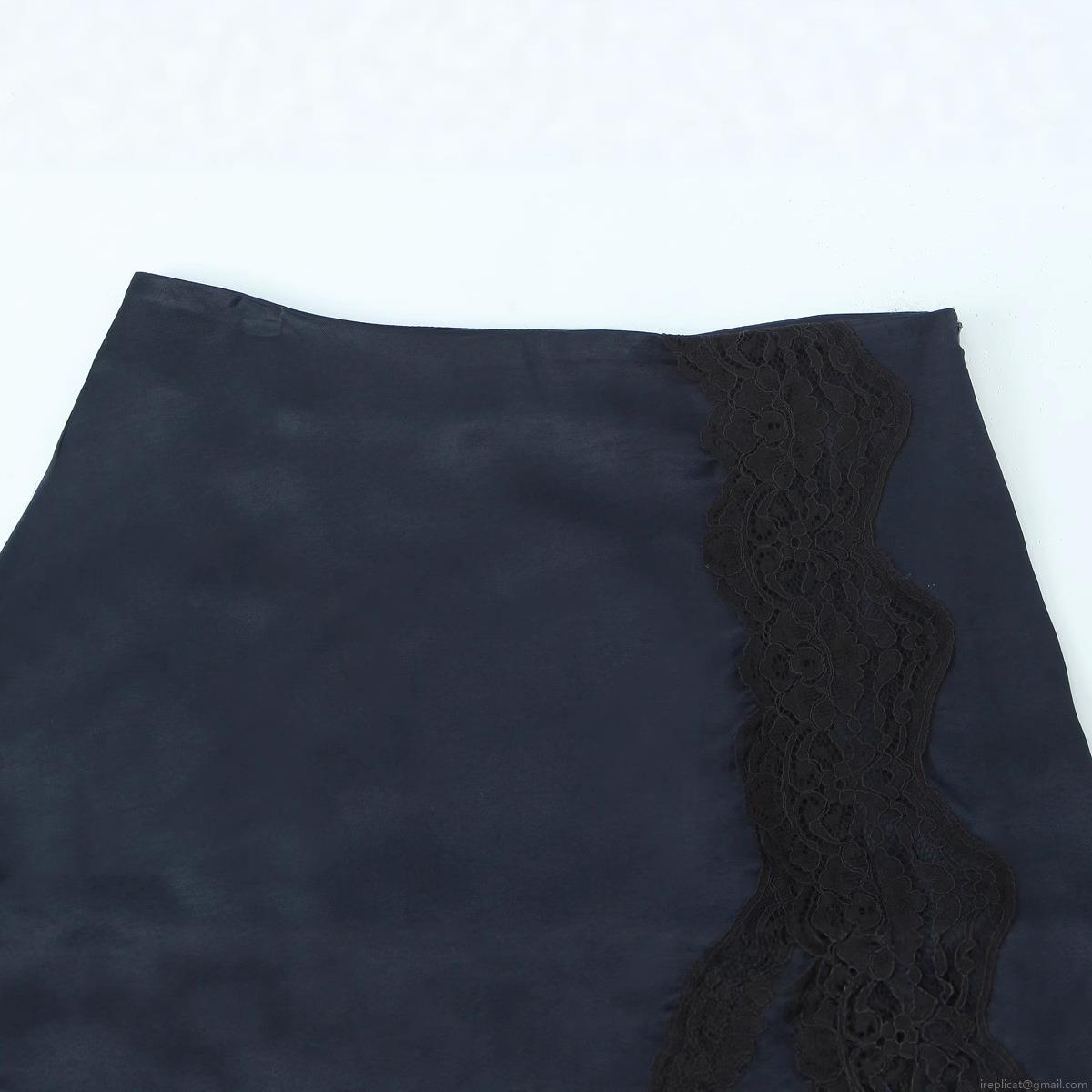 • Women's Sexy Satin Mini Skirt With Lace Trim Patchwork Asymmetrical Hem Solid Navy Blue Street Style Short Skirt For Club Party Night Out