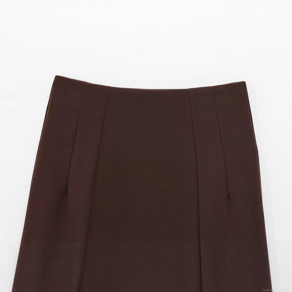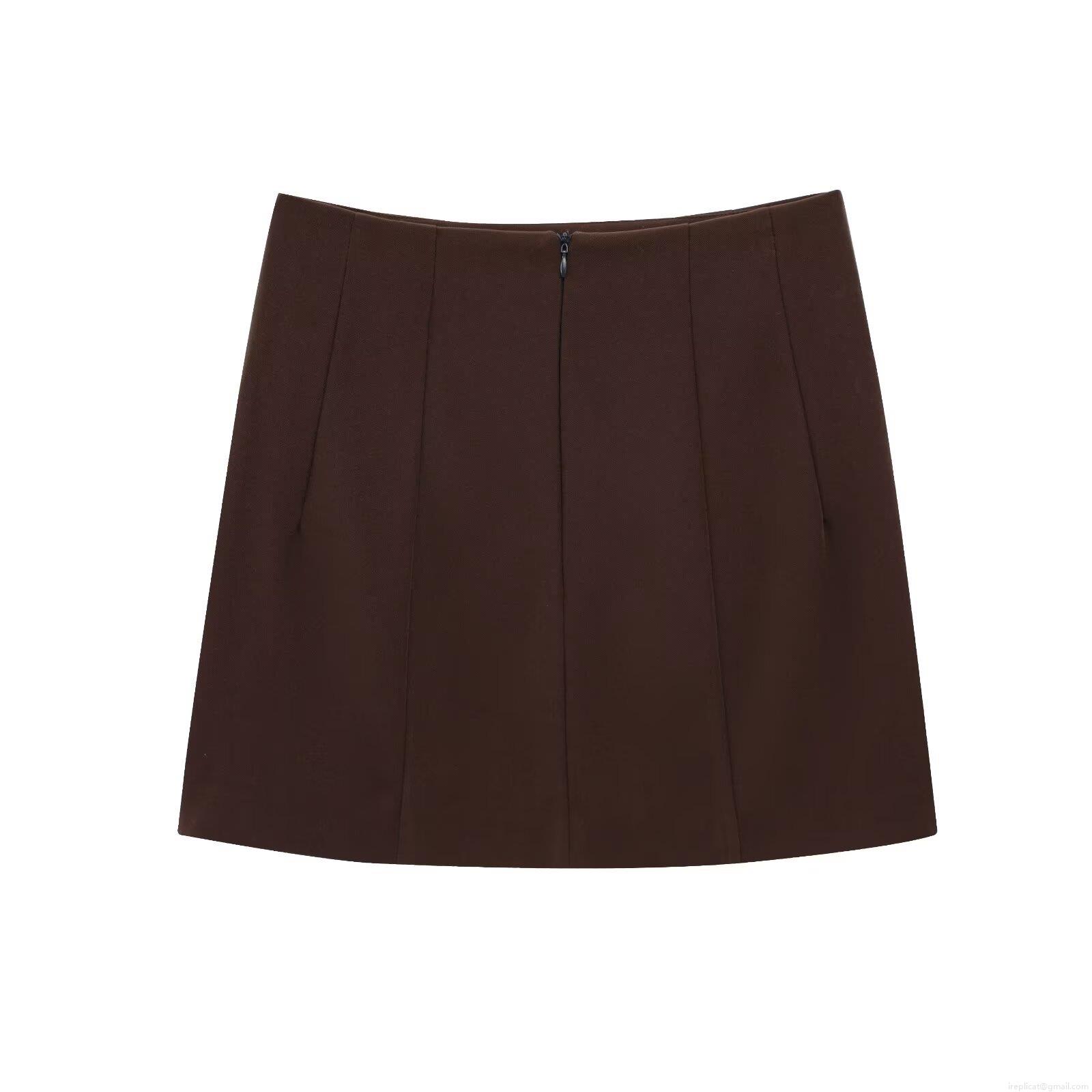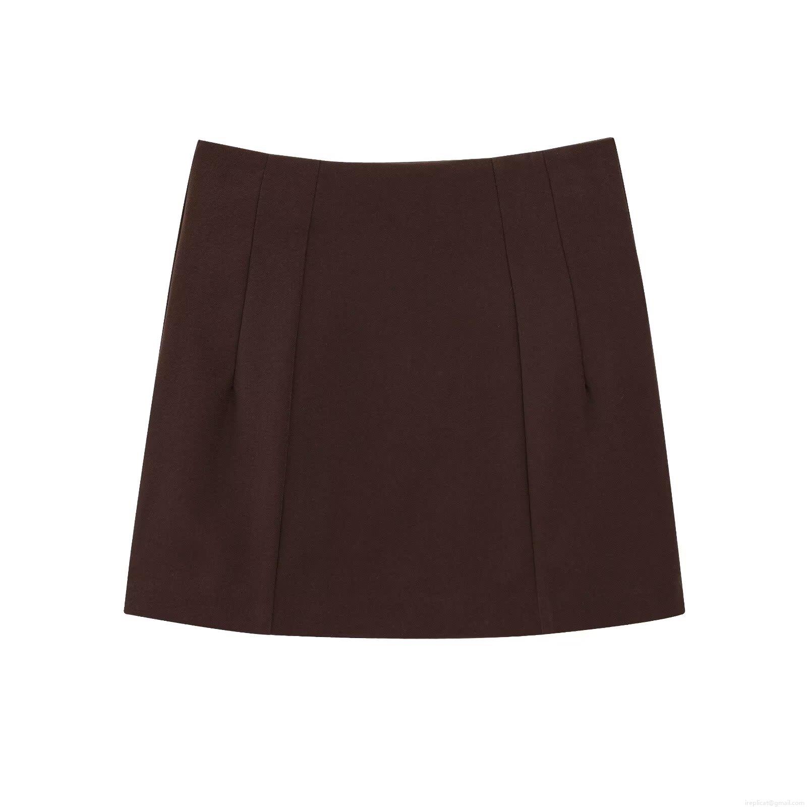 • Women's Solid Deep Brown Twill A-Line Mini Skirt Casual High Waisted Sexy Bodycon Short Skirt for Streetwear Daily Party Ladies