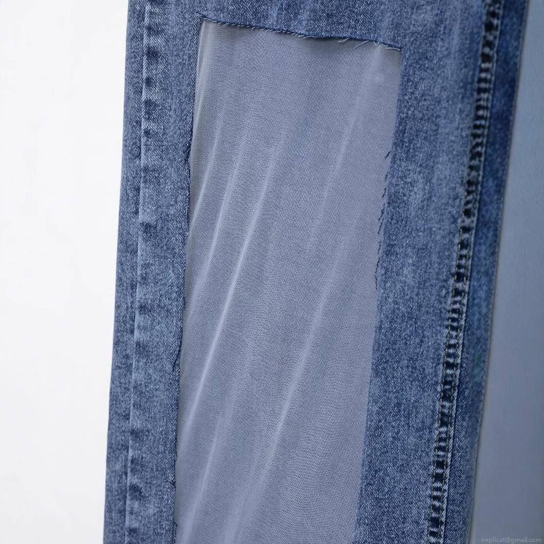 Women's Straight Leg Jeans Mesh Patchwork Mid Waist Denim Pants European American Street Style Summer Polyester Long Trousers For Women