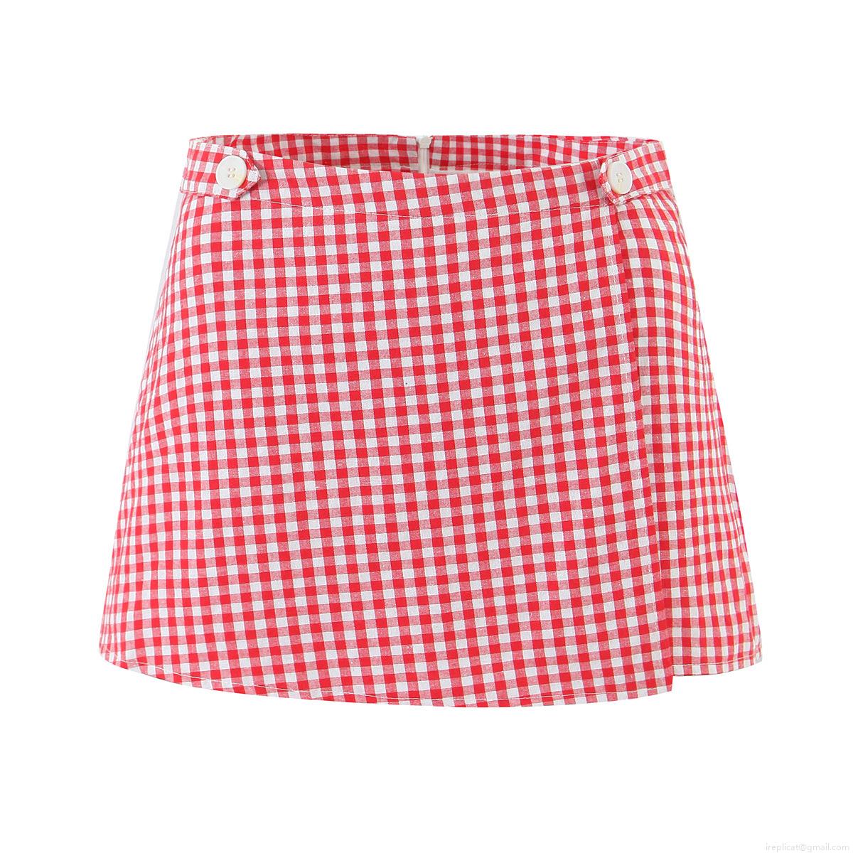 Women's Summer European Style Button Decor A-Line Cotton Linen Skort Gingham Plaid Casual Low Waist Short Skirt Pants For Women Streetwear Fashion