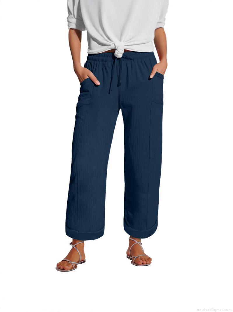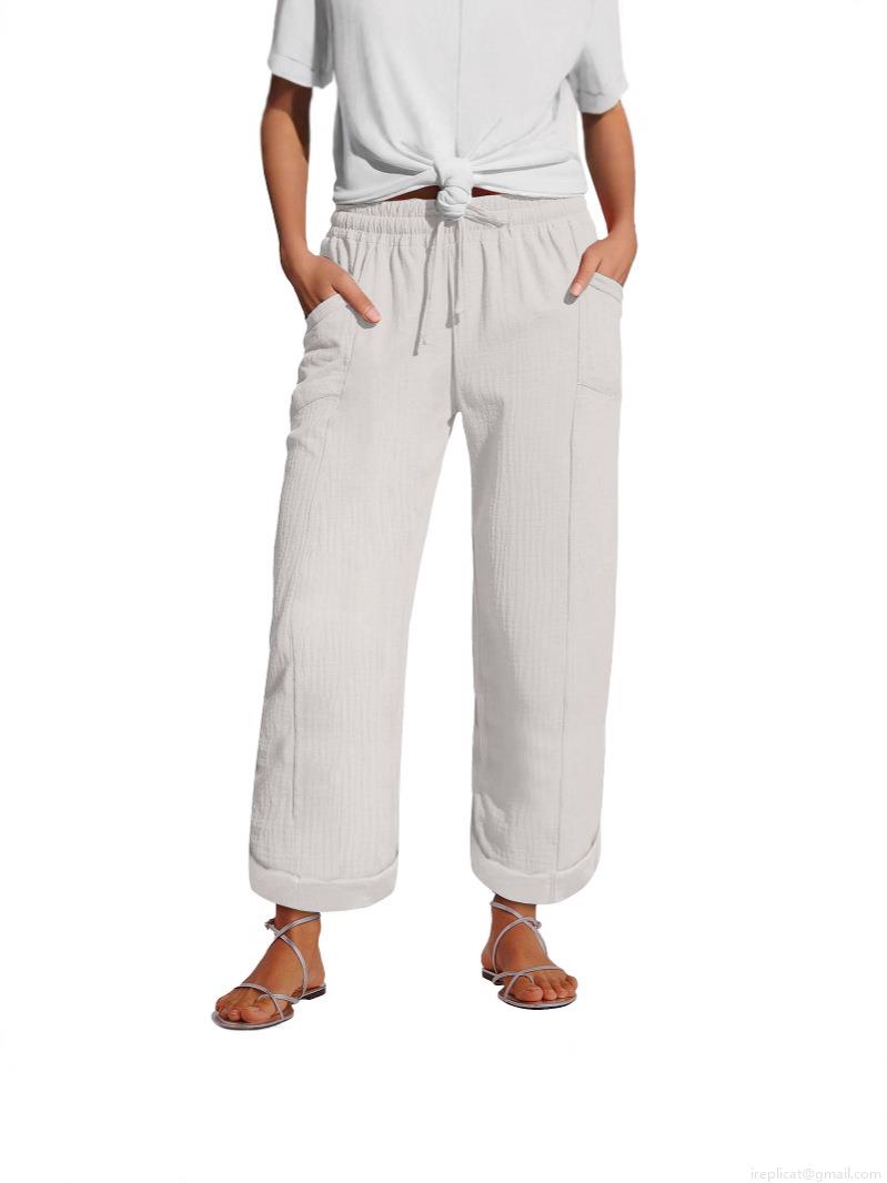 • Women's Wide Leg Pants High Waist Cotton Linen Casual Trousers Loose Elastic Waist Drawstring Trousers with Pockets Summer Vacation Vintage Relaxed Fit Bottoms for Women