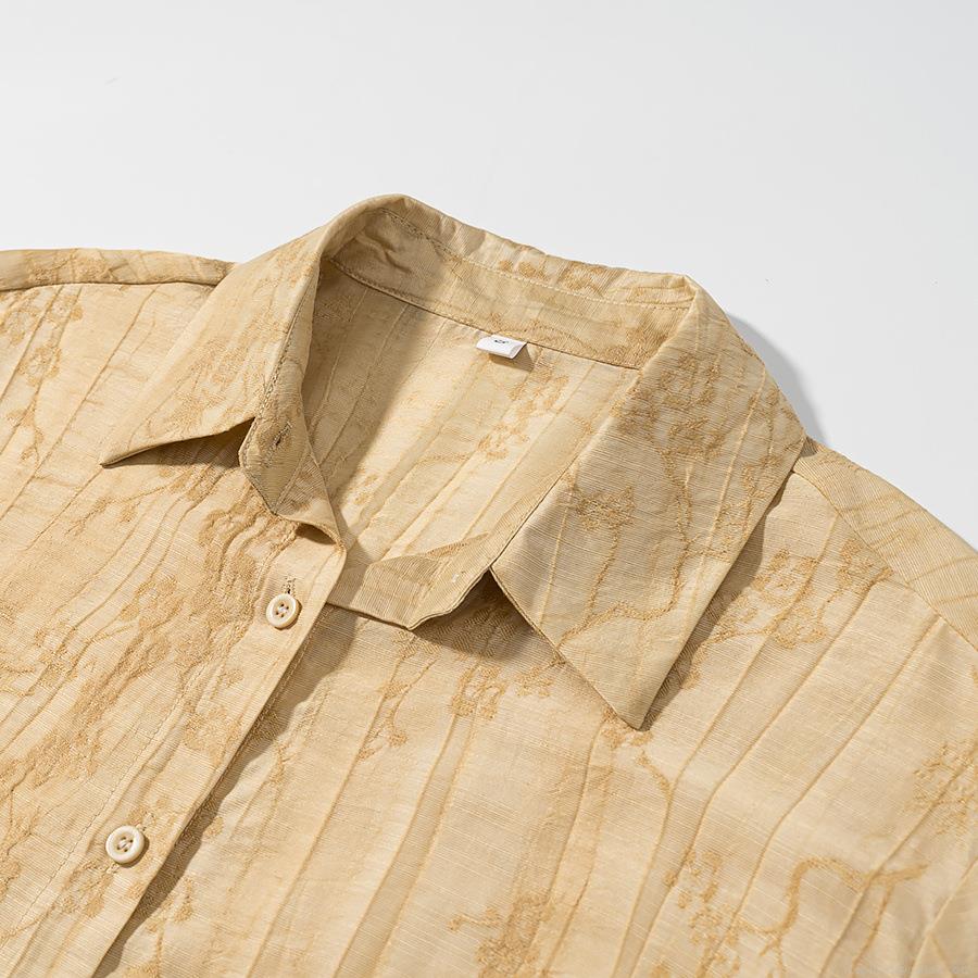 • Women's Casual Jacquard Shirt Set 2 Piece Outfits Long Sleeve Button Down Shirt and Wide Leg Pants Floral Textured Sets for Vacation