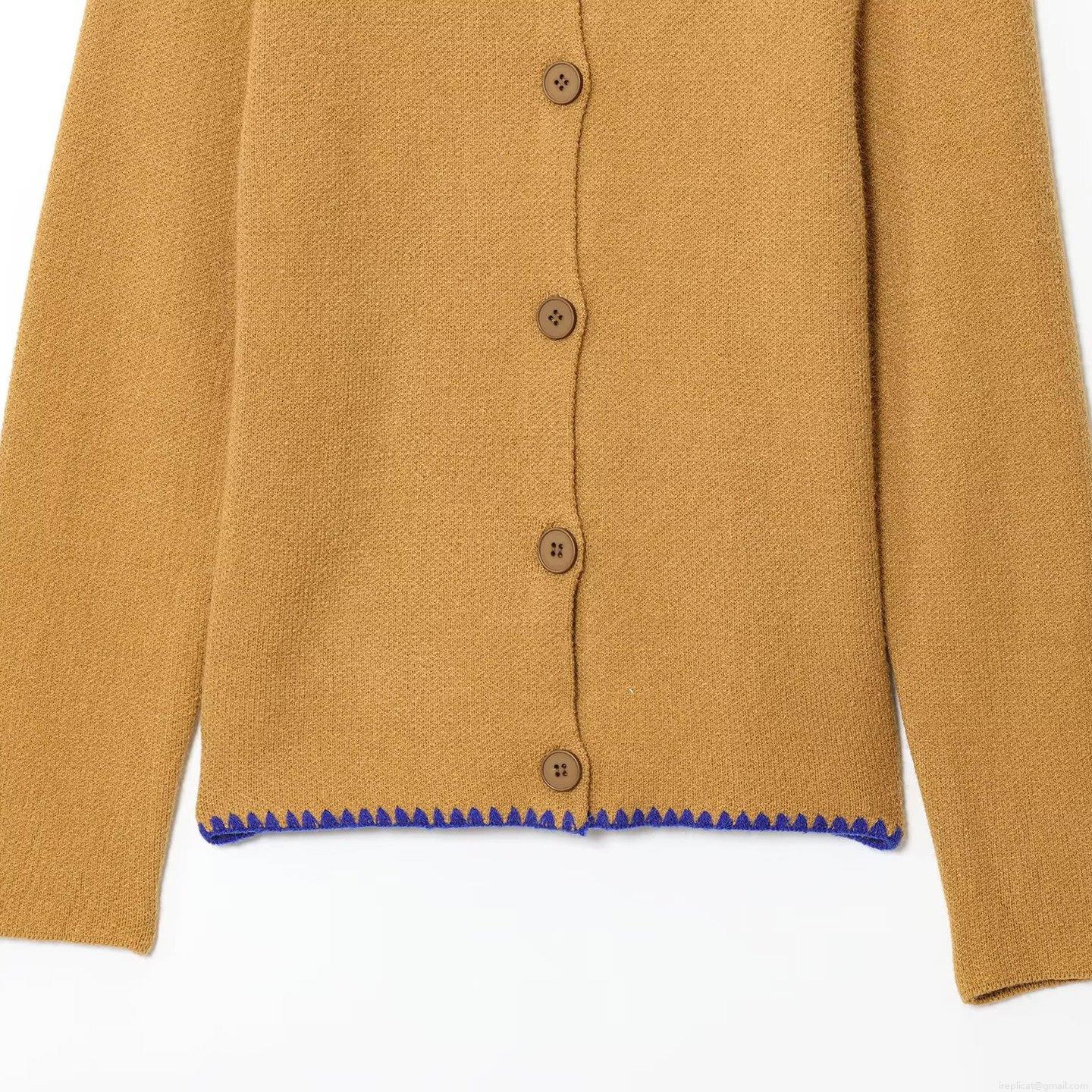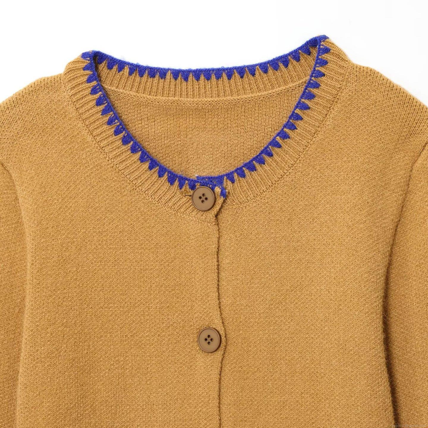 Solid Color, Knit Crochet, Resin Buttons, Contrast Color Overlocking, Wavy Edge Stitching