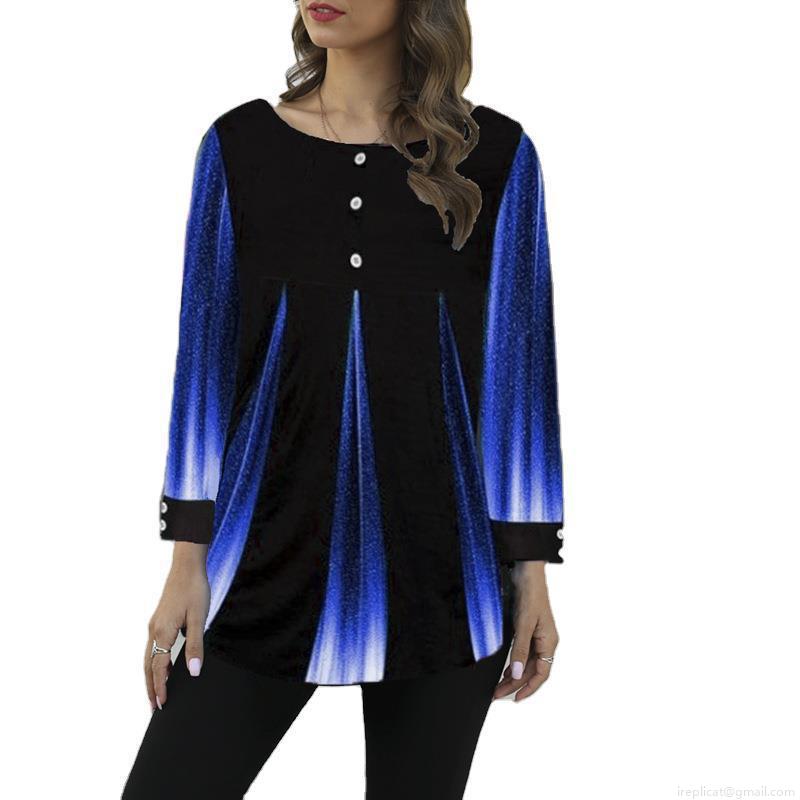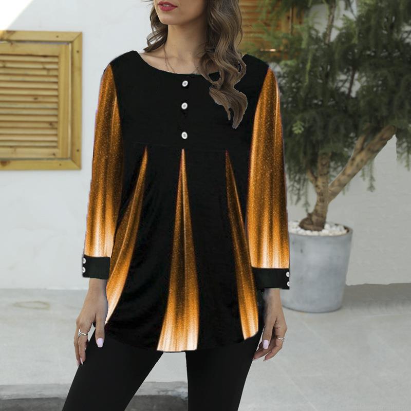 • Women's Casual Loose Round Neck T-Shirt Radiant Gradient Striped Print Tunic Top with Decorative Buttons Long and Short Sleeve Cotton Blend Summer Autumn Fashion Streetwear Tee