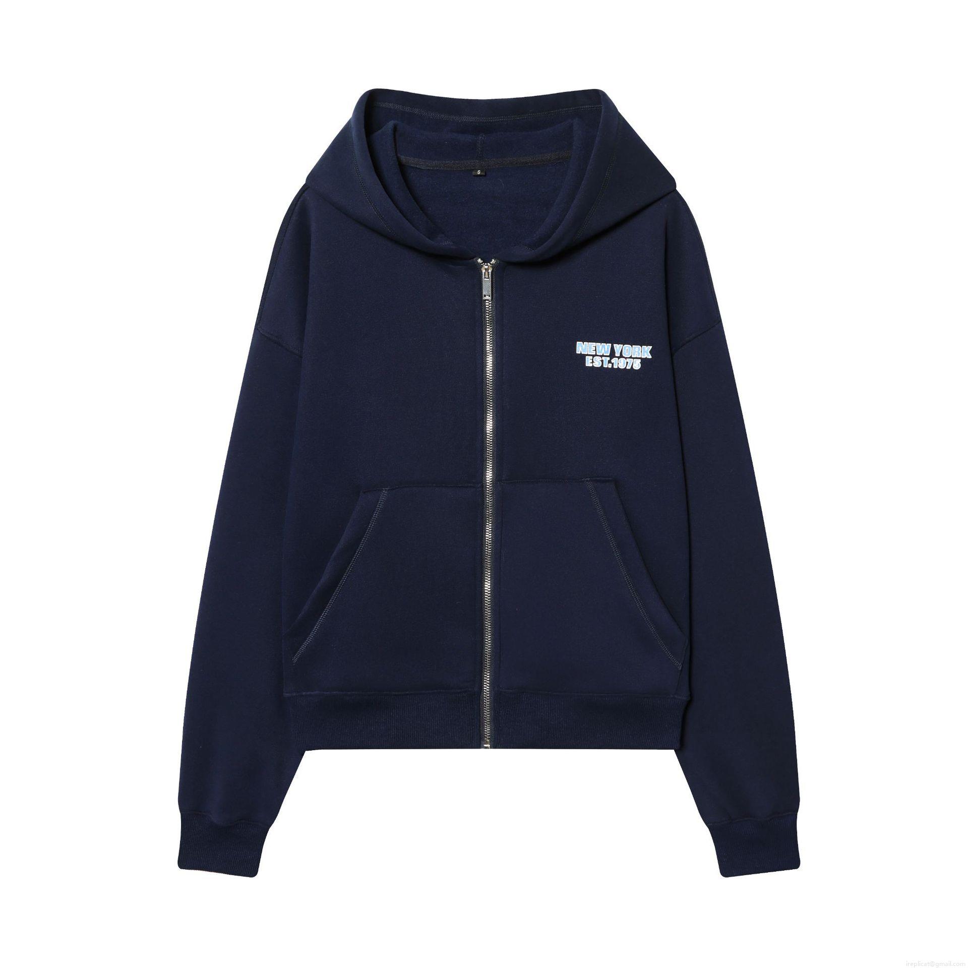 Zipper, Letter Print, Ribbed Knit, Foot Binding, New York Est. 1975 Letter Print