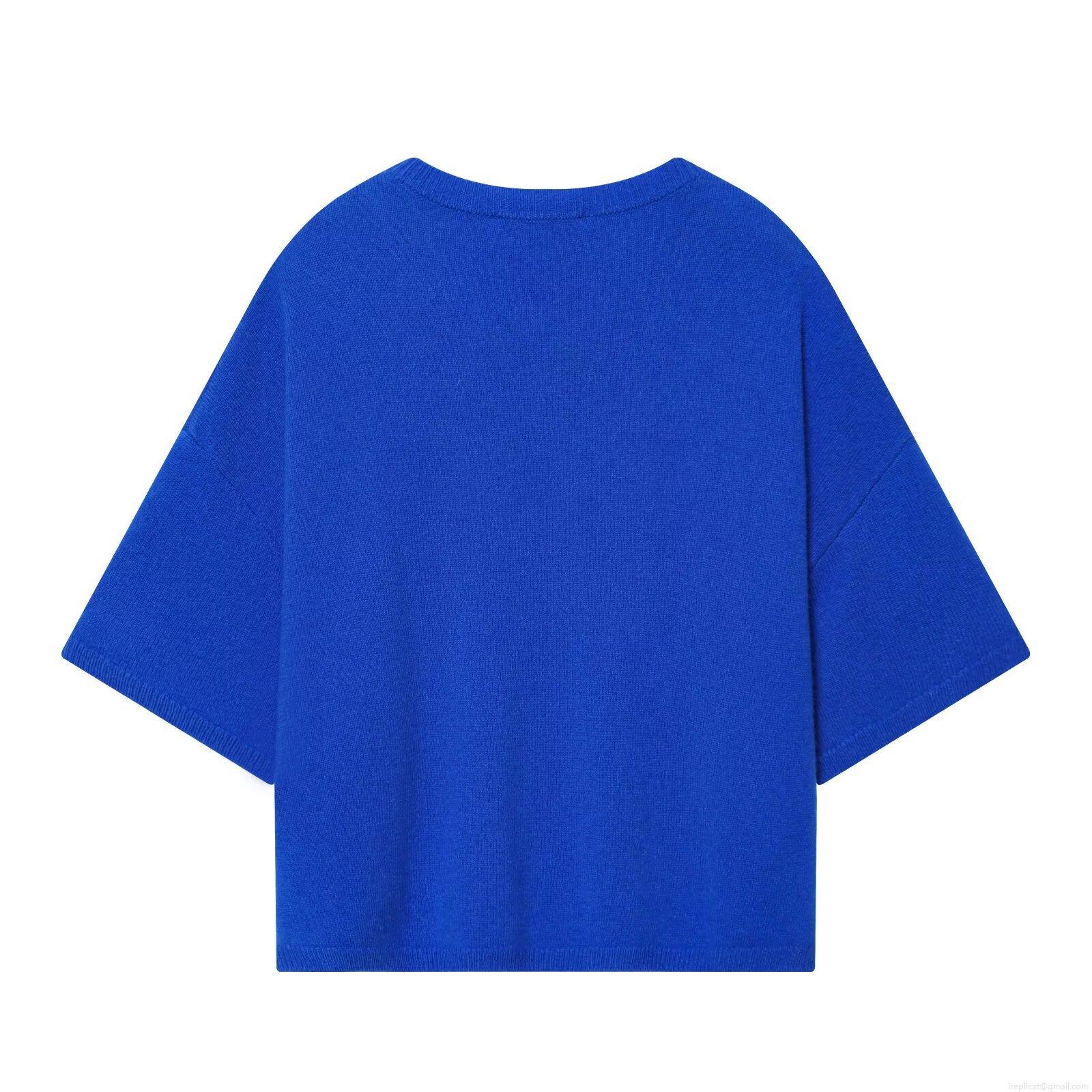 • Women's Casual Round Neck Short Sleeve Knitted Sweater Minimalist Oversized Solid Color Royal Blue Polyester Soft Top For Daily Fashion Wear