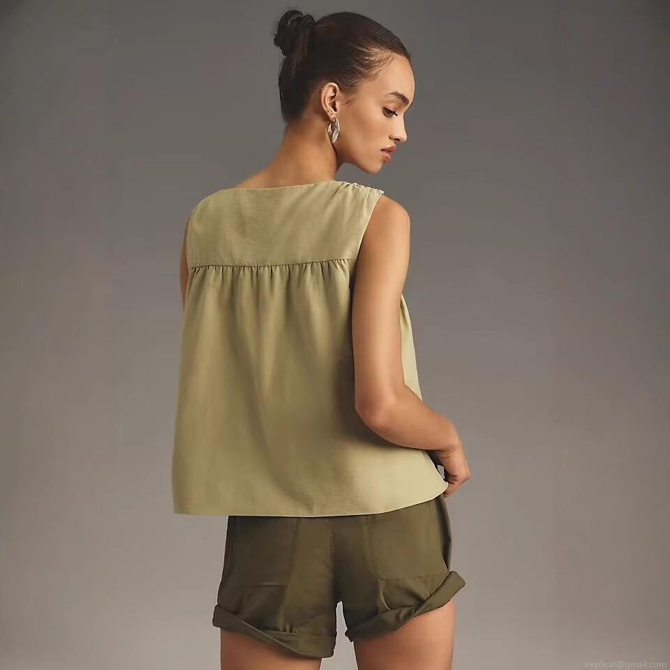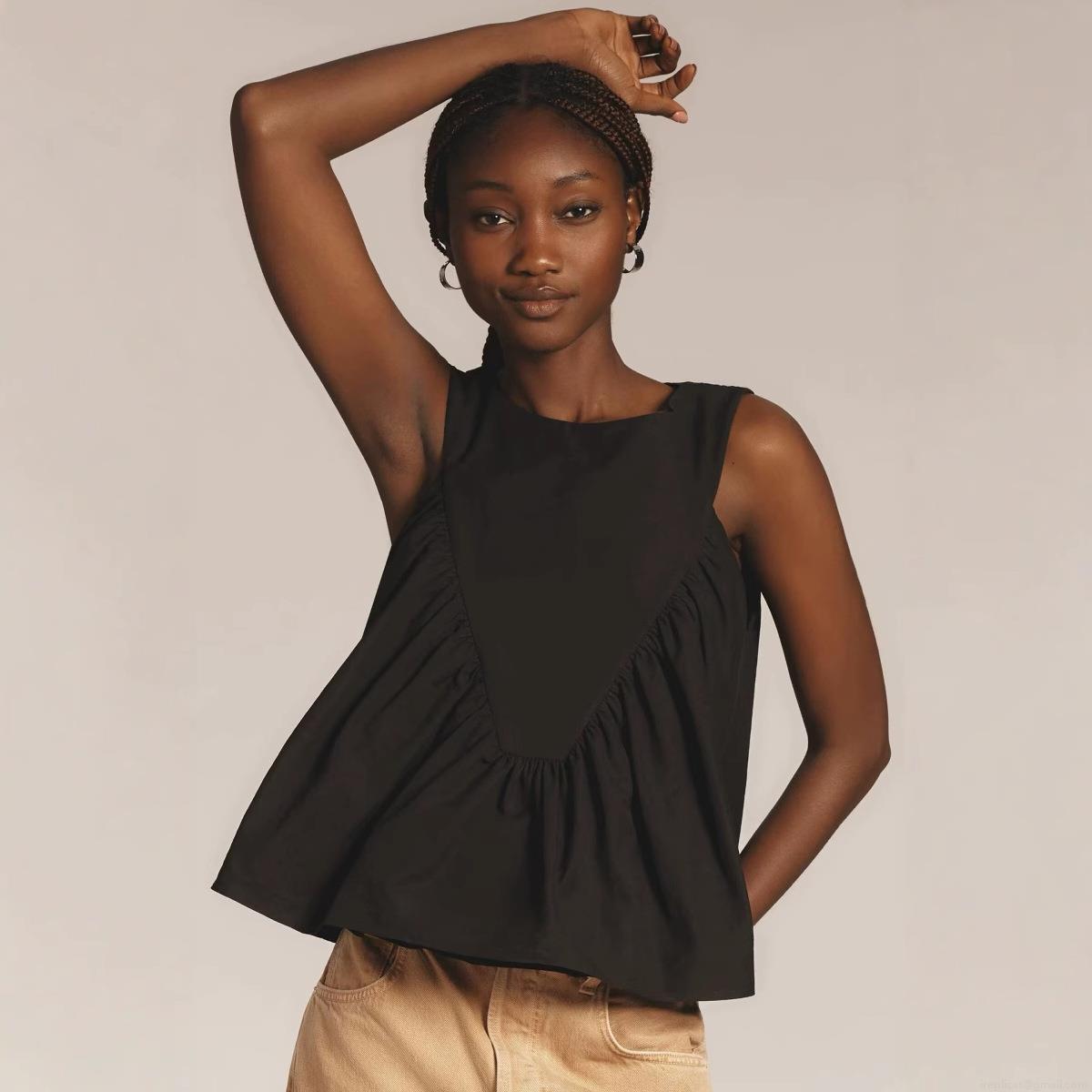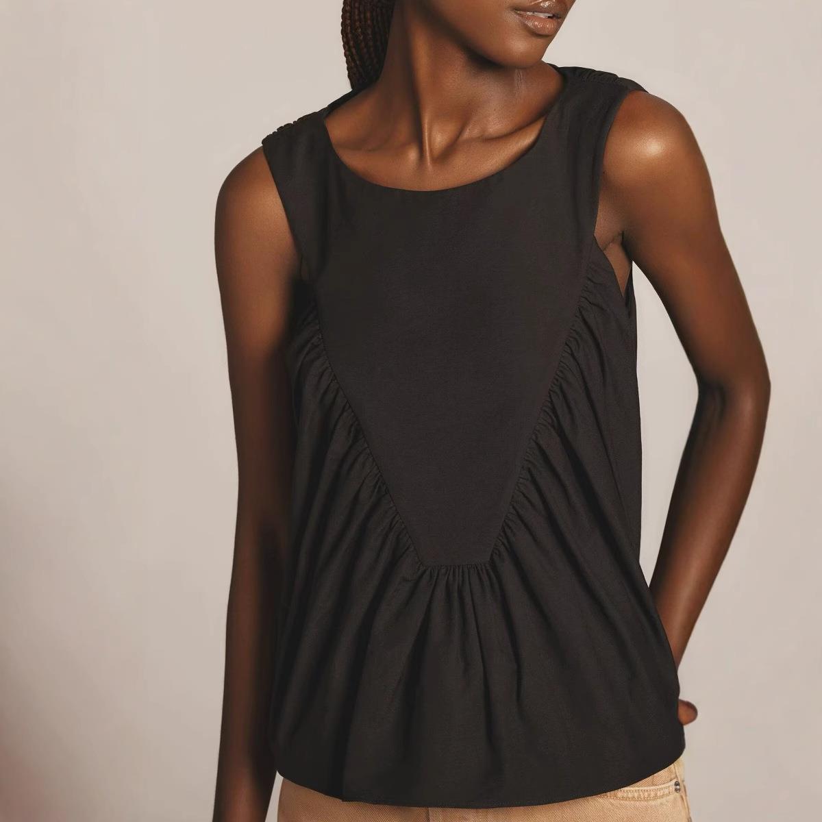 • Women's Casual Sleeveless Tank Top Round Neck Pleated Stitching Polyester Summer Loose Vest Comfortable Daily Fashion Top for Women