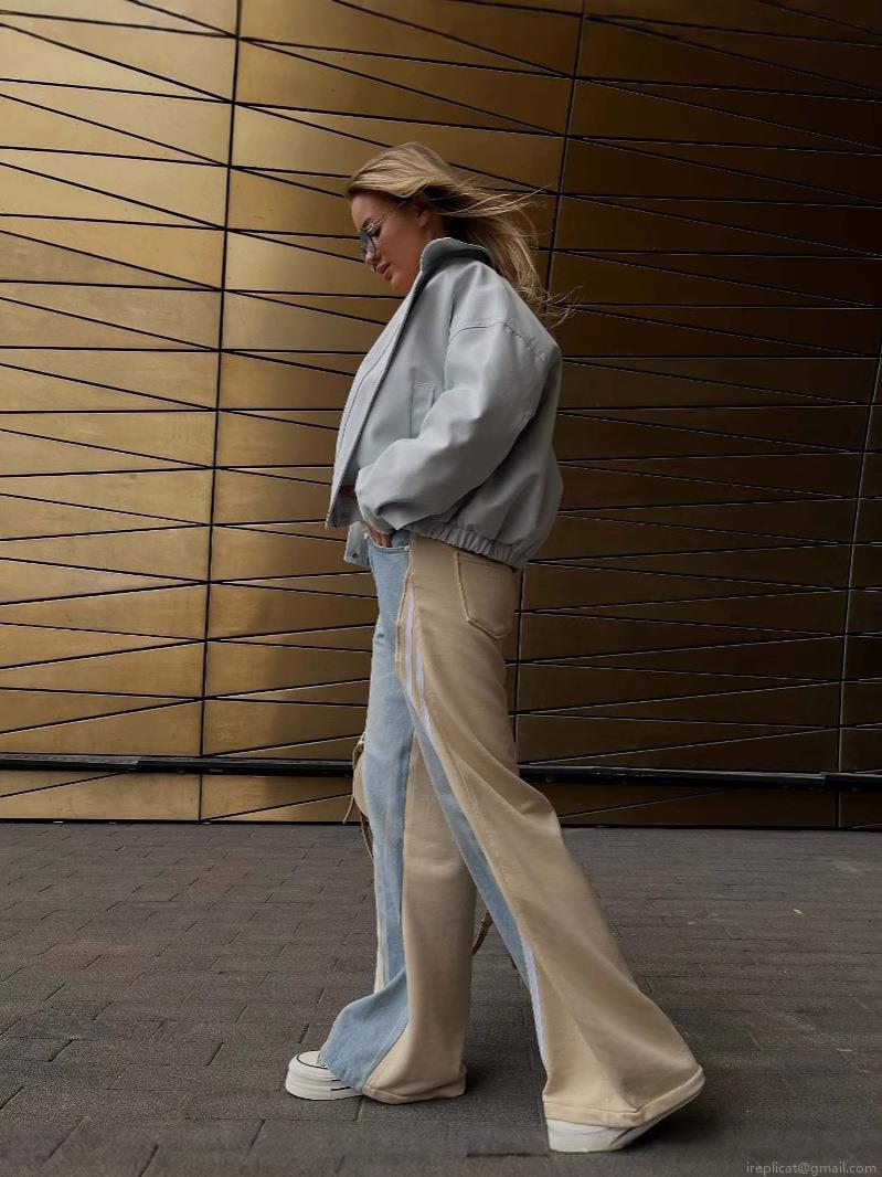 • Women's Color Block Patchwork Flare Jeans High Waist Wide Leg Denim Pants With Side Stripes Streetwear Fashion Loose Trousers For Women Trendy Trousers