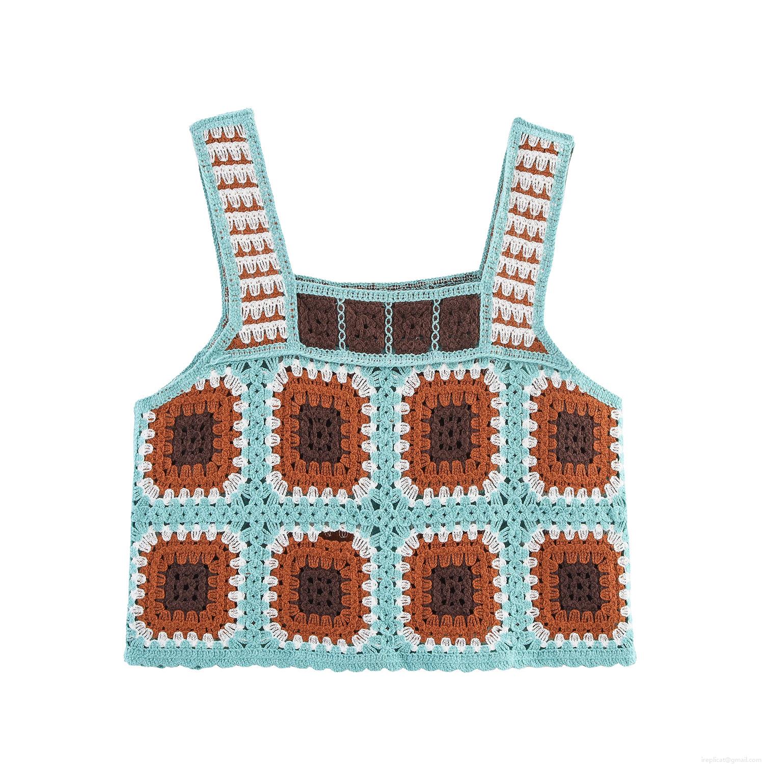 • Women's Crochet Knit Tank Top Granny Square Bohemian Sleeveless Crop Cami For Vacation Summer Party Vintage Hollow Out Contrast Color Fashion Vest