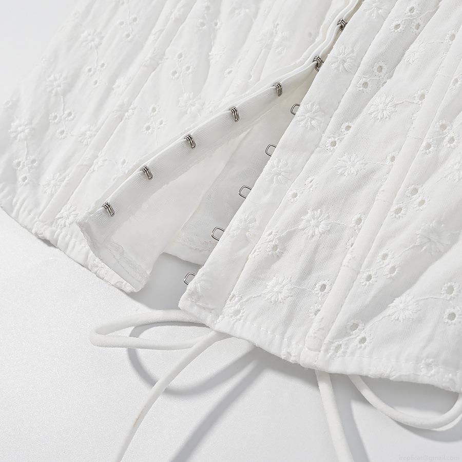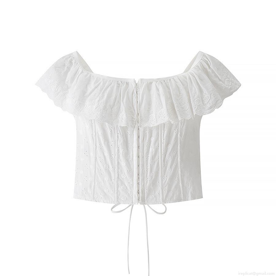 • Women Sweet Off The Shoulder Eyelet Embroidery Ruffle Top Cotton Blend Lace-Up Slim Fit Short Sleeve Summer French Cottagecore Crop Blouse