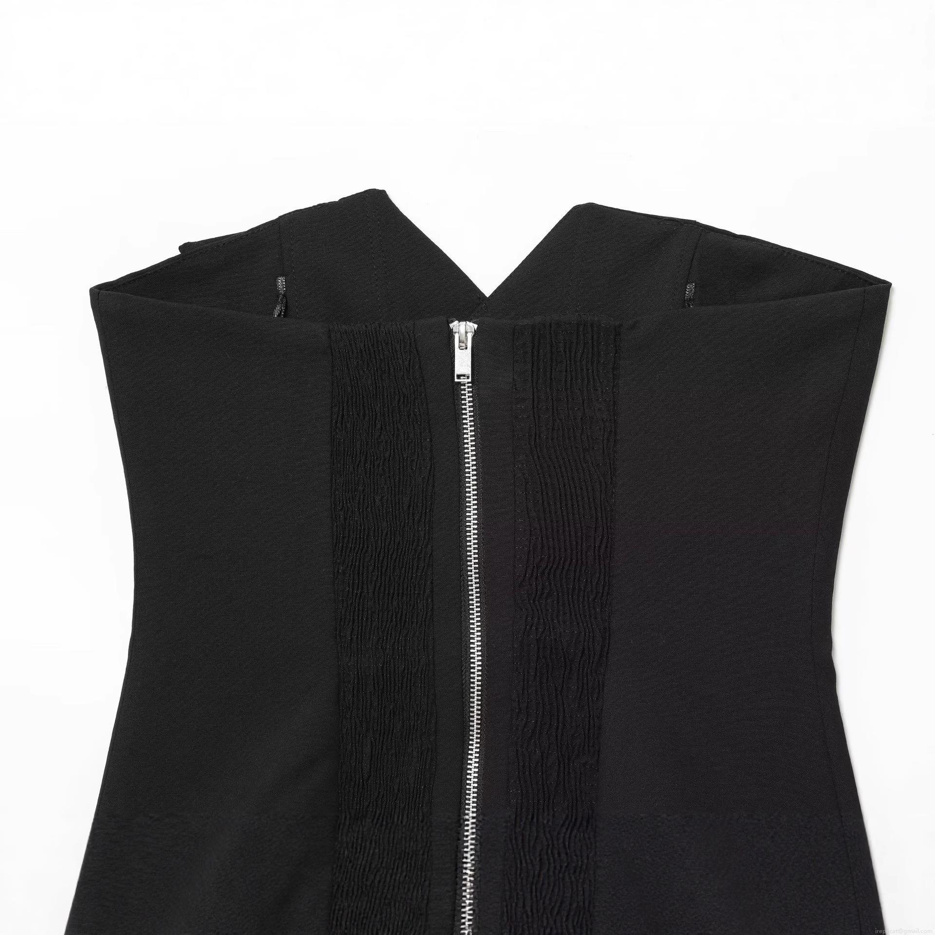 • Women's Chic Black Strapless Tube Top Asymmetric Lapel Slim Fit Crop Top Back Zipper Sexy Bustier For Party Club Socialite Style Solid Color Polyester Woven Top