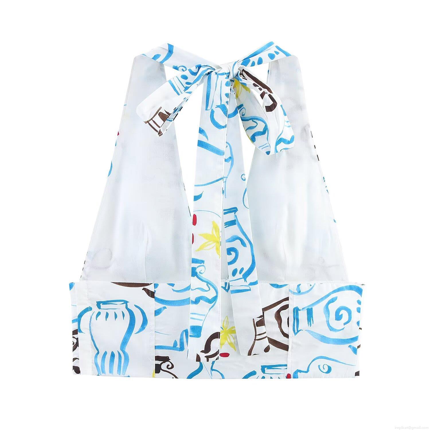 • Women's Halter Neck Crop Top Greek Pottery Vase Print Sexy Sleeveless Backless Polyester Vest Artistic Printed Summer Streetwear Party Vacation Top