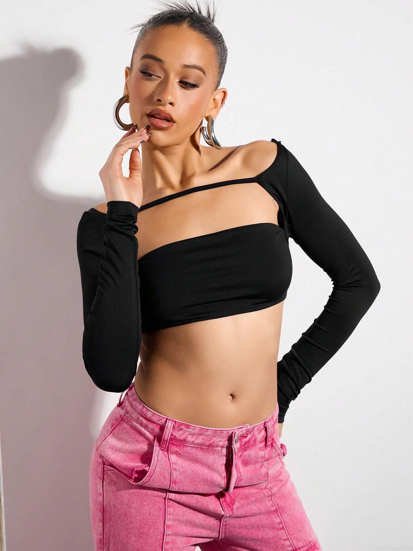 Solid Color, Hollow Out, Tight, Navel Exposed, Strapless Design