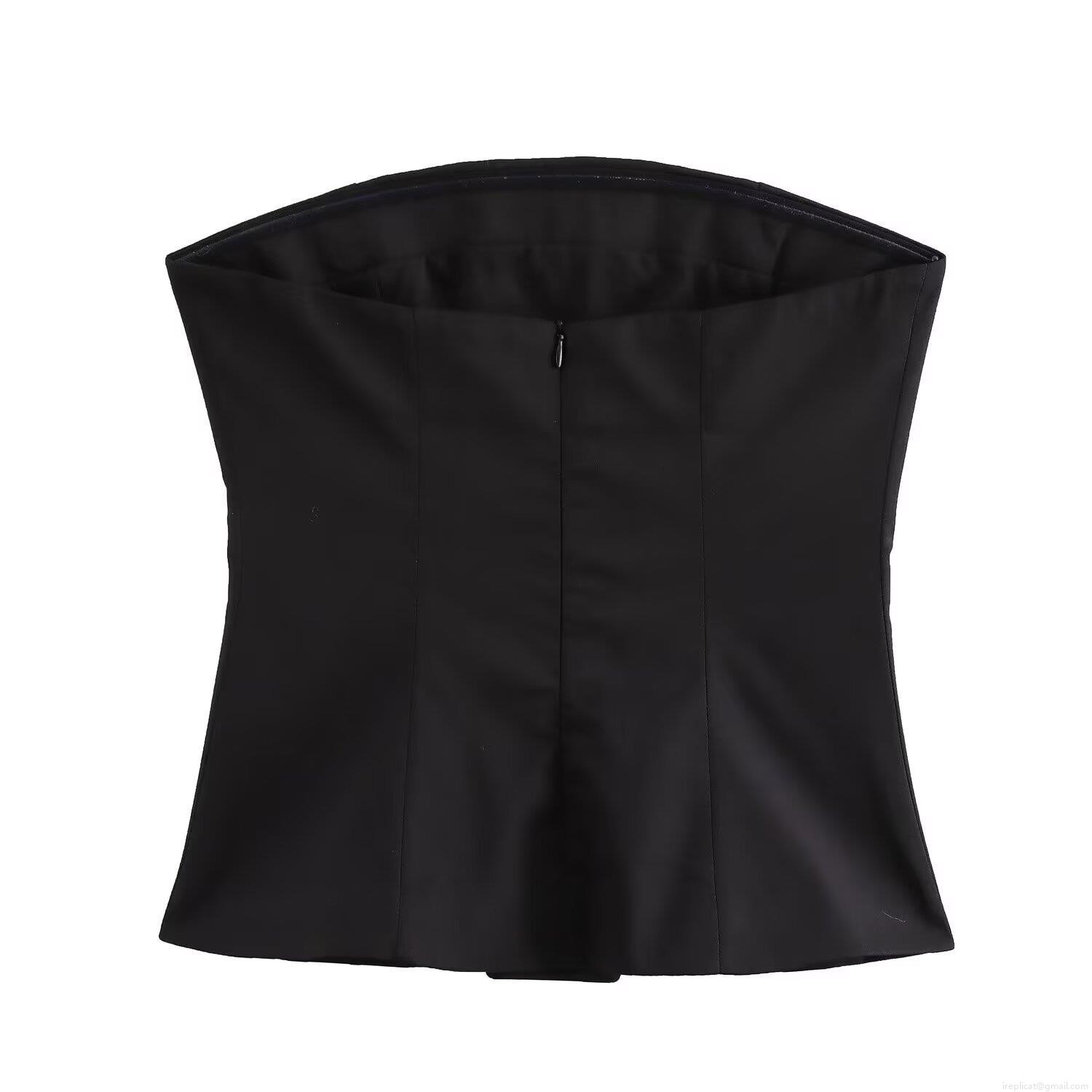 • Women's Sexy Black Tube Top Strapless Slim Fit Crop Top Back Zipper Solid Color Streetwear Polyester Fabric Corset Top For Party Dating