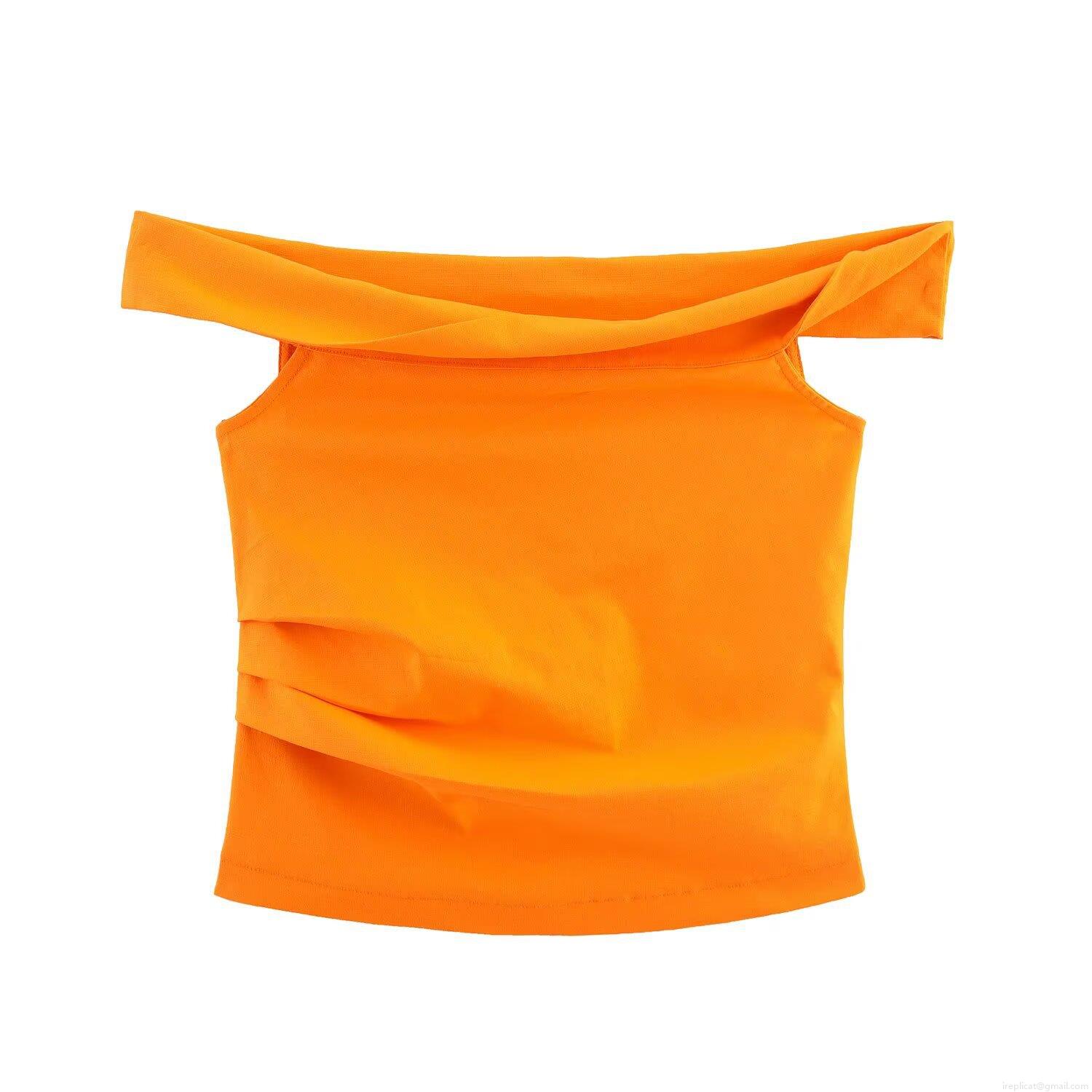 • Women's Sexy Off-The-Shoulder Sleeveless Asymmetric Twisted Knot Top Slim Fit Solid Color Polyester Short Crop Top For Summer Party Ladies Clothing