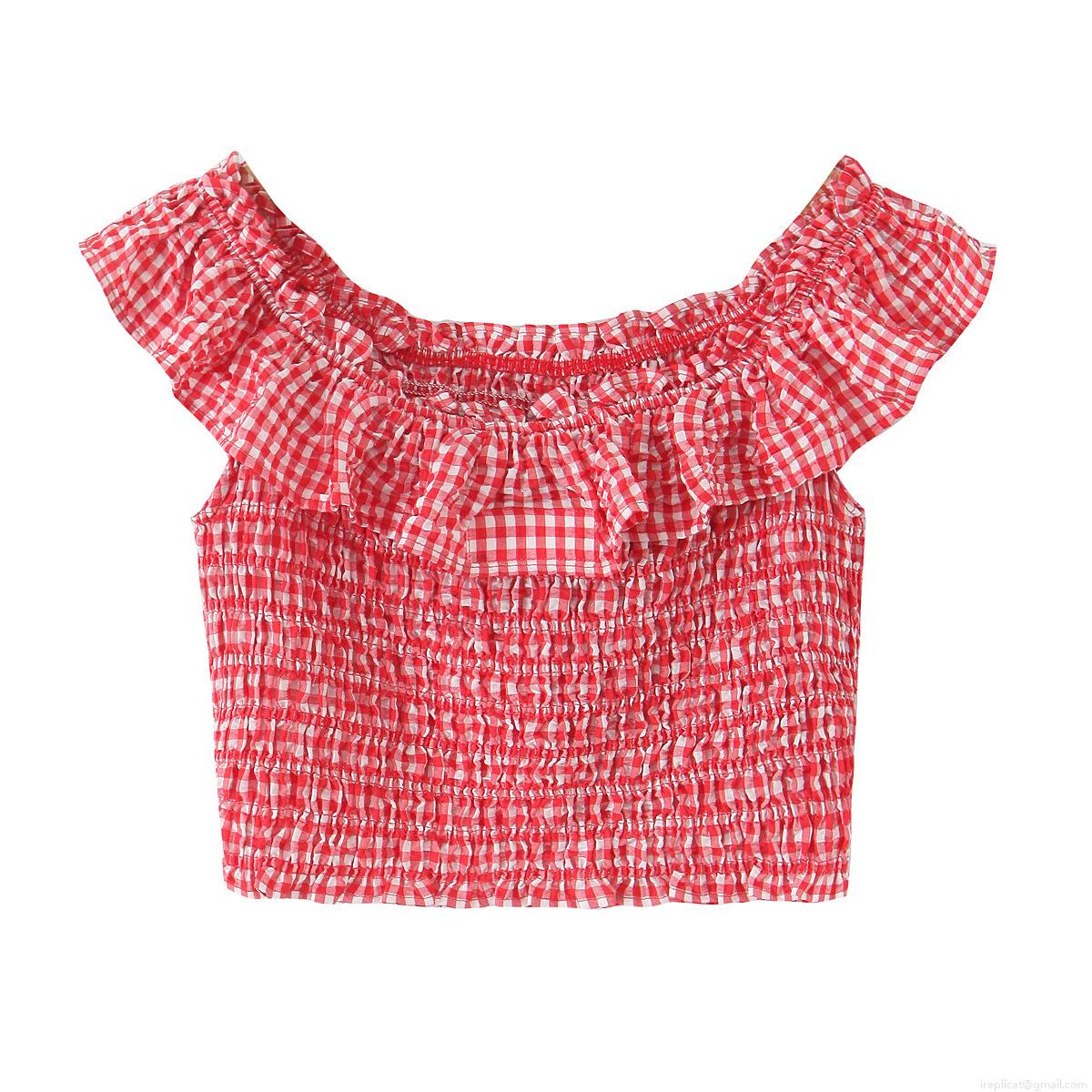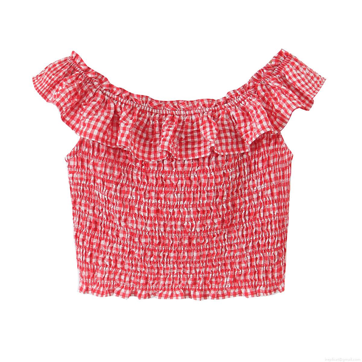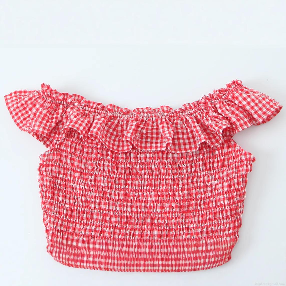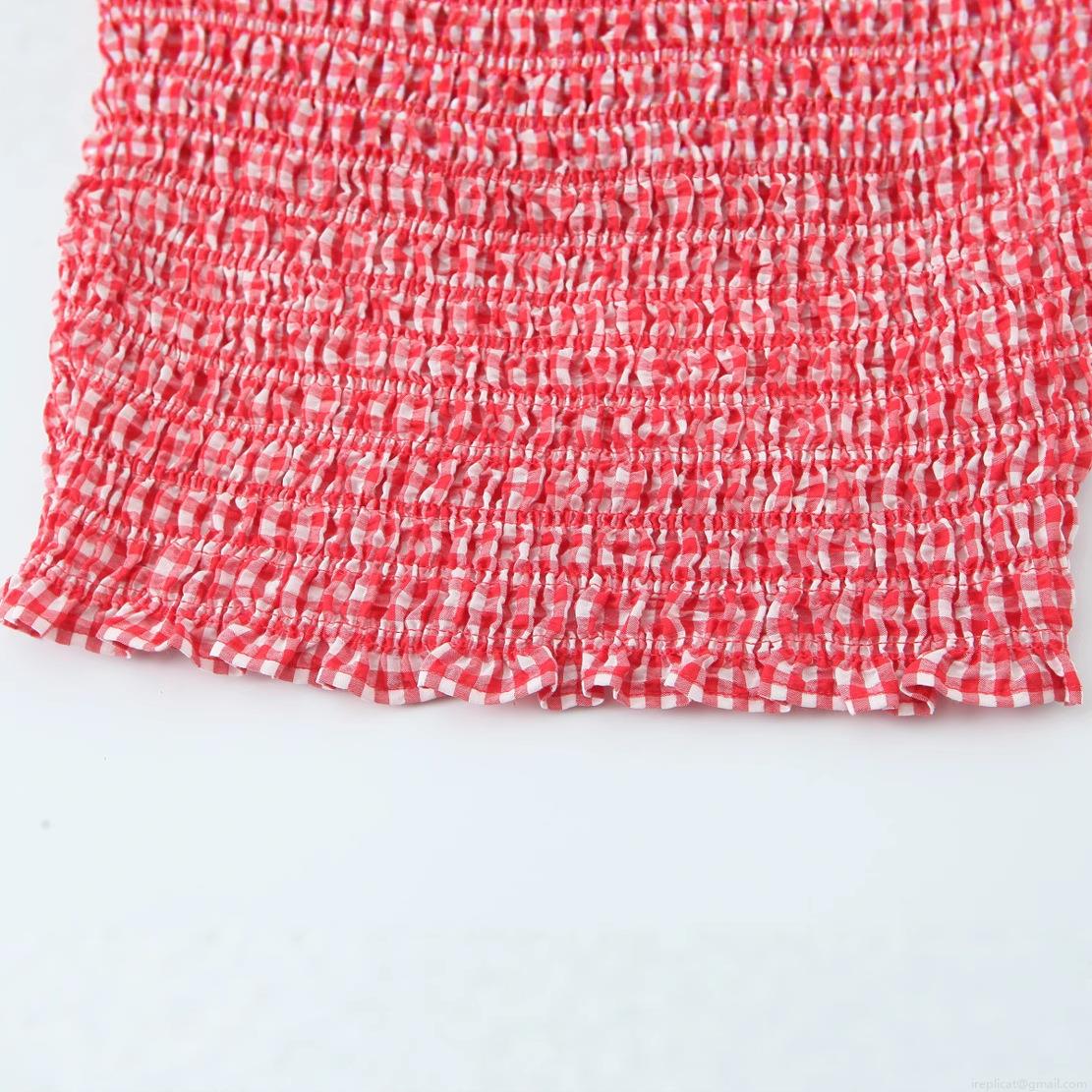• Women's Sexy Red White Plaid Smocked Crop Top Off Shoulder Ruffle Hem Elastic Gingham Tube Top Summer Beach Streetwear Casual Sexy Slim Fit Blouse