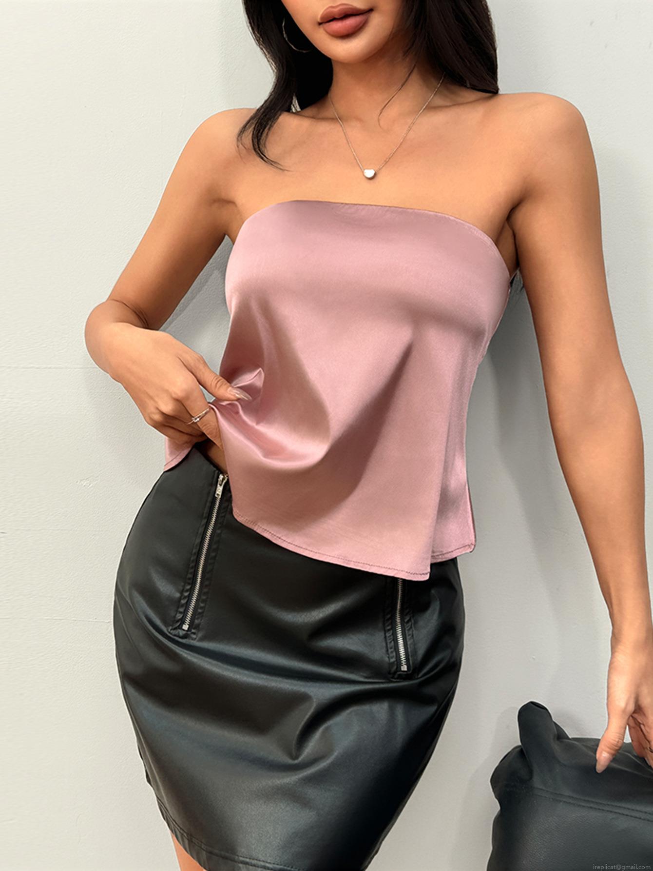 • Women's Sexy Satin Tube Top Solid Orange Pink Strapless Sleeveless Crop Top Slim Fit Elegant Summer Party Top