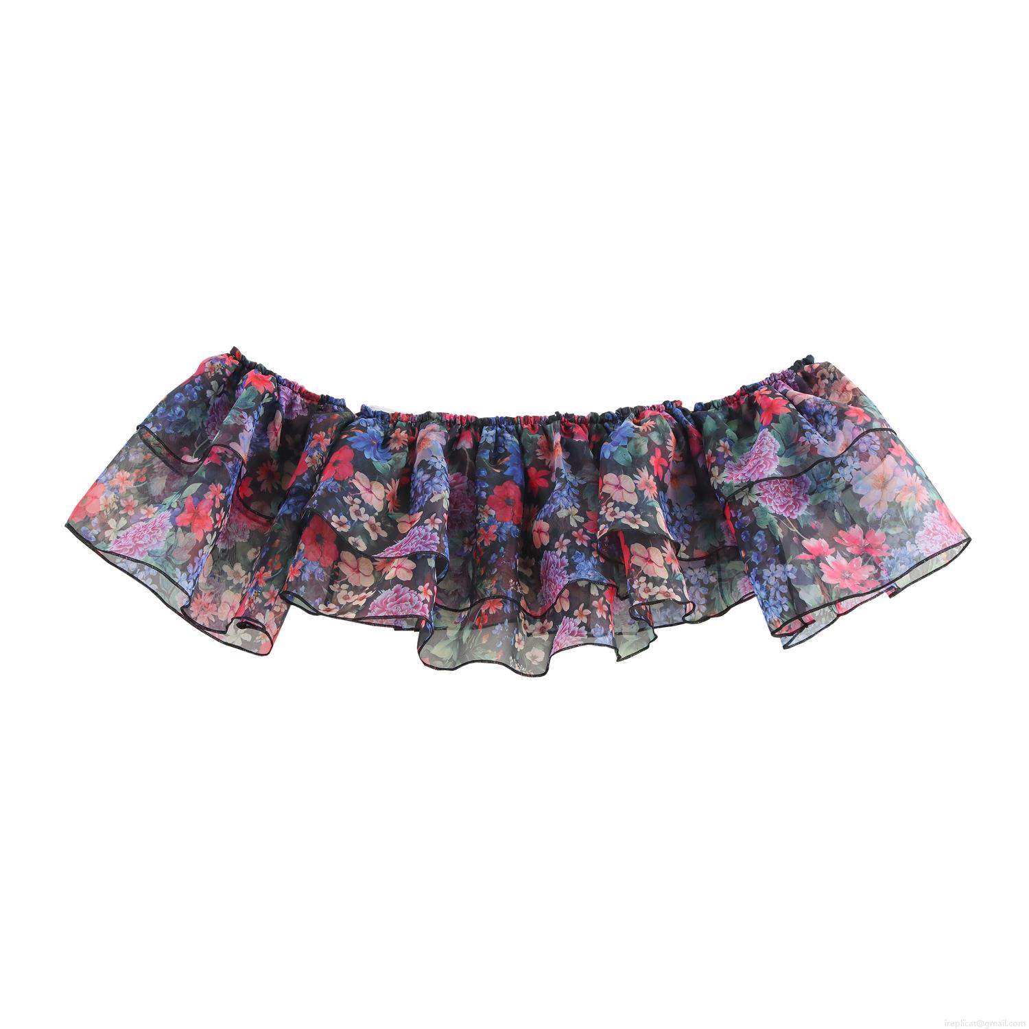 • Women's Sweet Off-Shoulder Layered Organza Top Floral Print Ruffle Chiffon Cropped Blouse Short Sleeve Mesh Sheer Shirt For Summer Daily Dating Casual Party