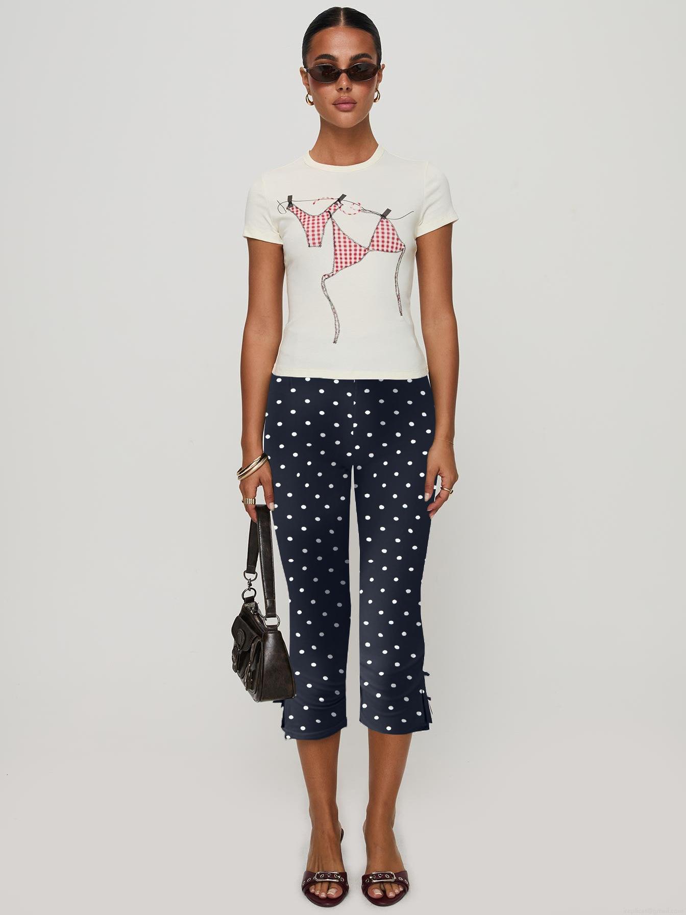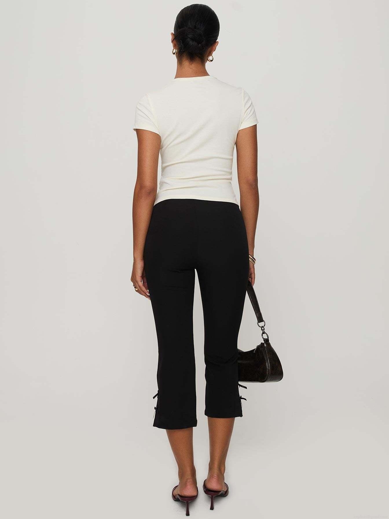 • Women's Cropped Flared Pants Bow Detailing Side Slit Polyester Spandex Blend High Waist Elastic Casual Streetwear Trousers For Lady