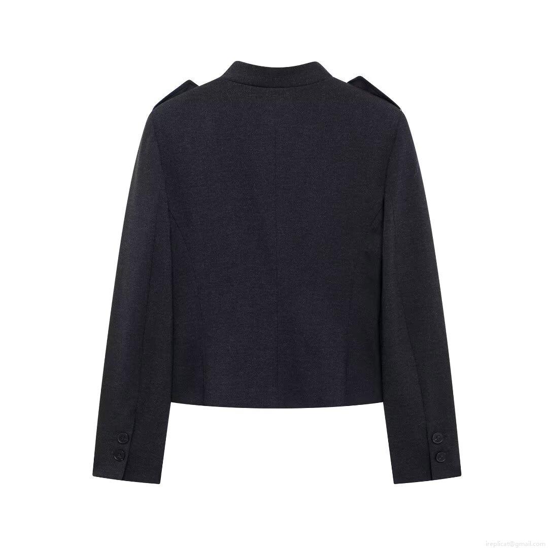 Solid Color, Shoulder Epaulettes, Stand-up Collar, Double-breasted