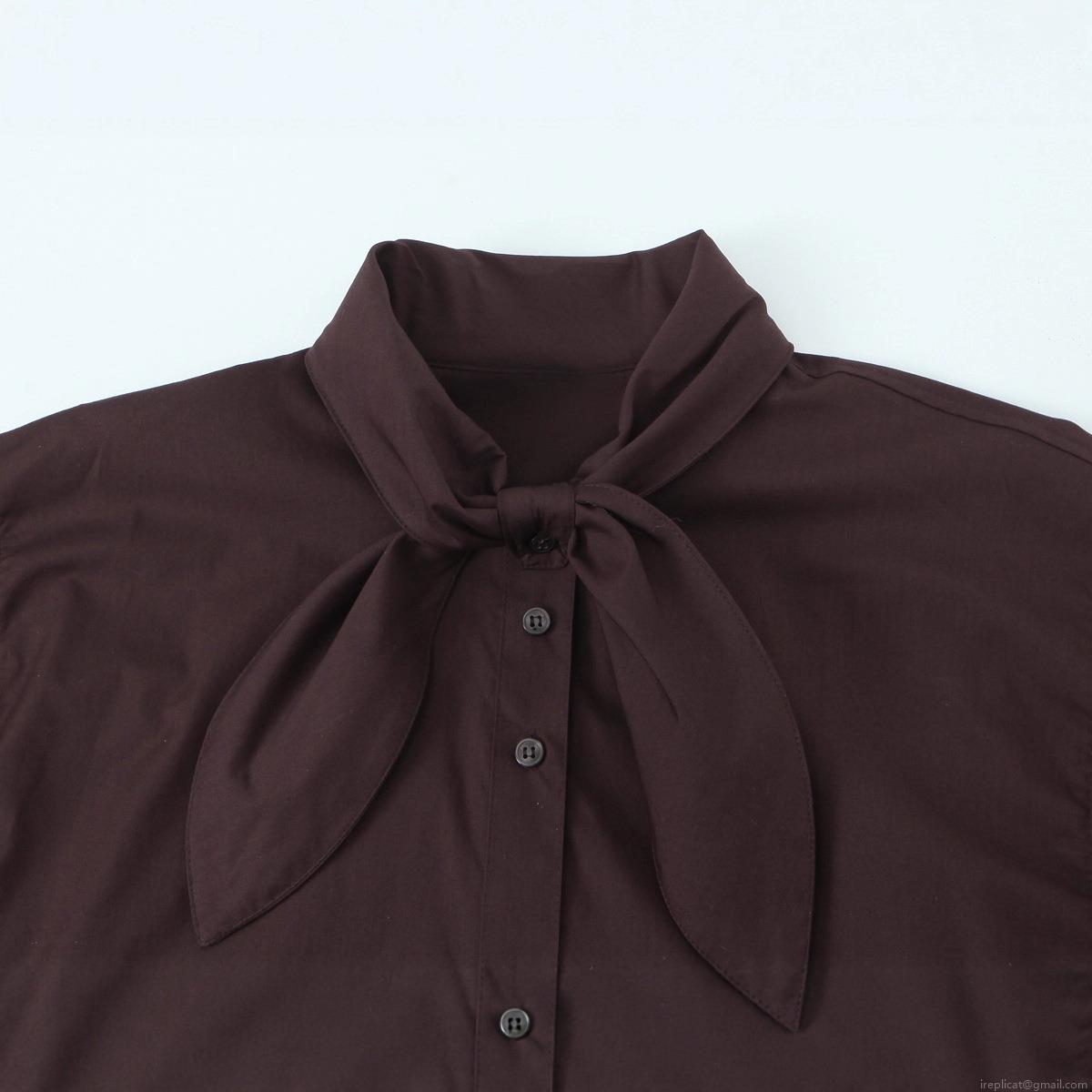 • Women's Elegant Coffee Brown Polyester Long Sleeve Blouse Shirt With Pussy-bow Tie Neck Vintage Solid Color Button Up Office Daily Casual Top