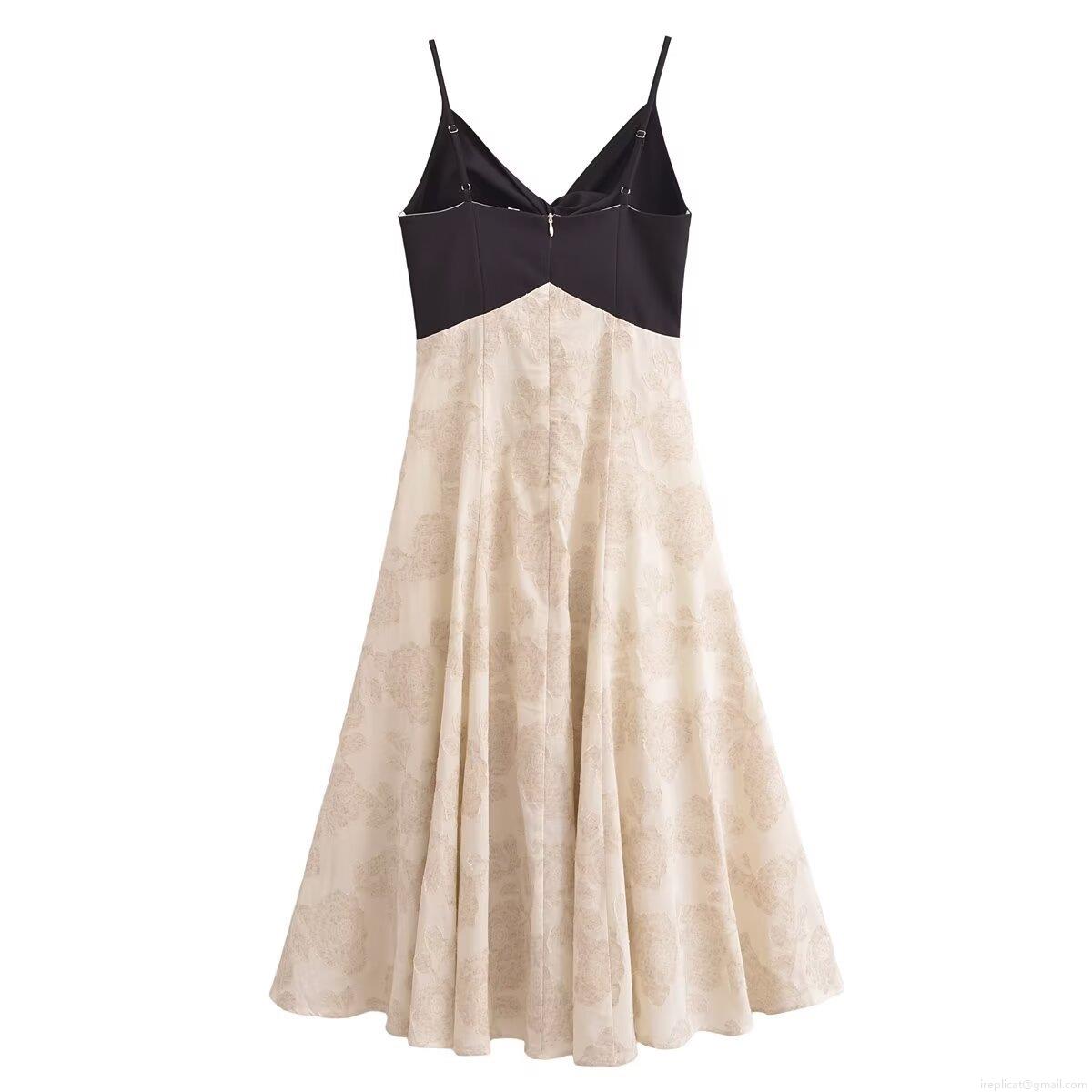 • Women's Elegant Color Block Jacquard Camisole Dress Sexy Backless V Neck Twist Front Midi Dress For Summer Party Vacation French Retro Style