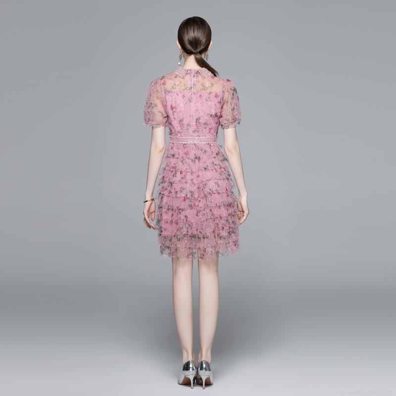 Splice, Floral Pattern, Mesh, Puff Sleeves, Heavy-duty Beading, Layered Skirt, Peter Pan Collar