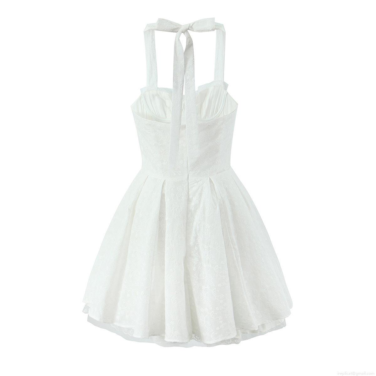 • Women's Elegant Halter Neck White Lace Embroidery Dress Bow Tie A-Line Mini Dress For Party Wedding Dating Sleeveless Hollow Out Sundress