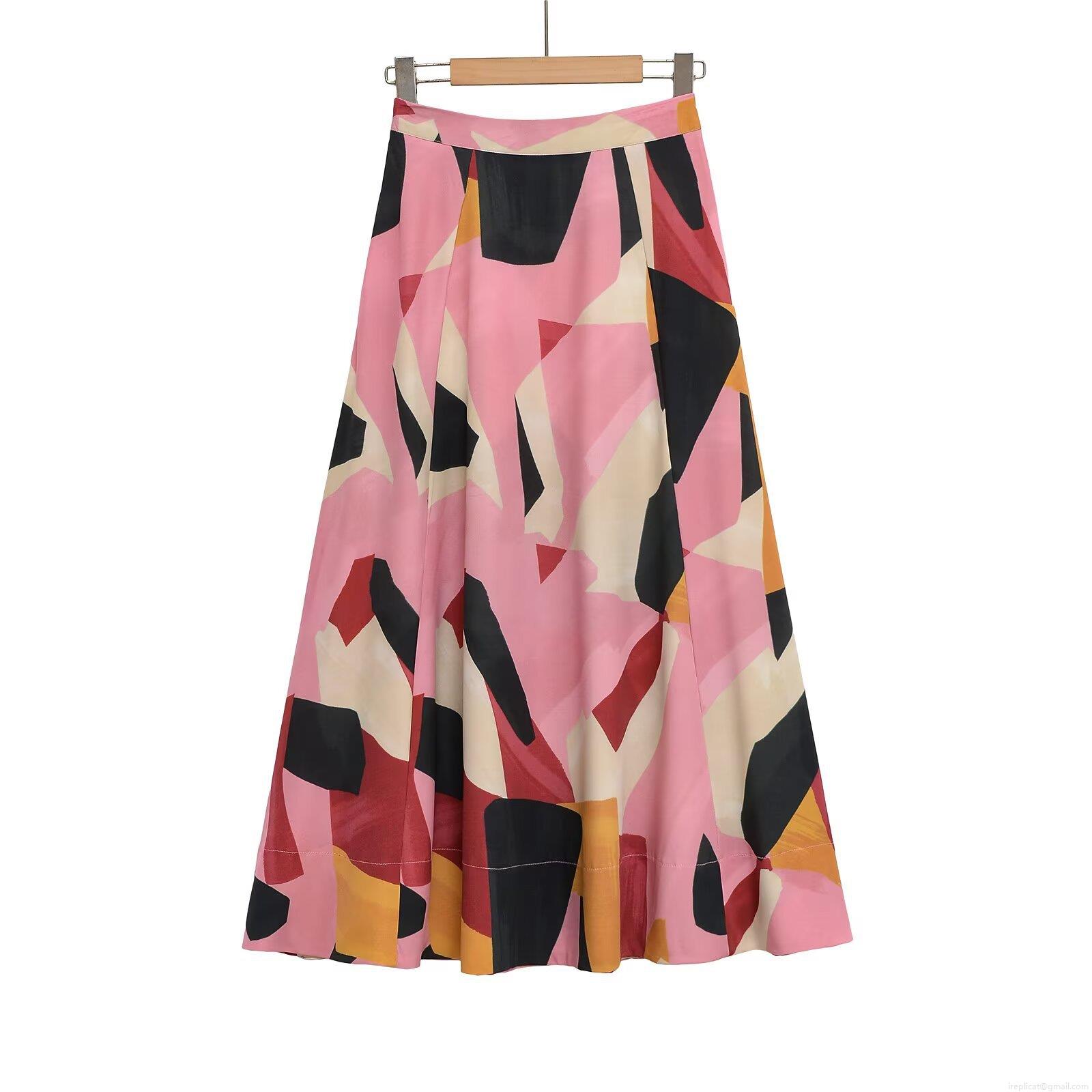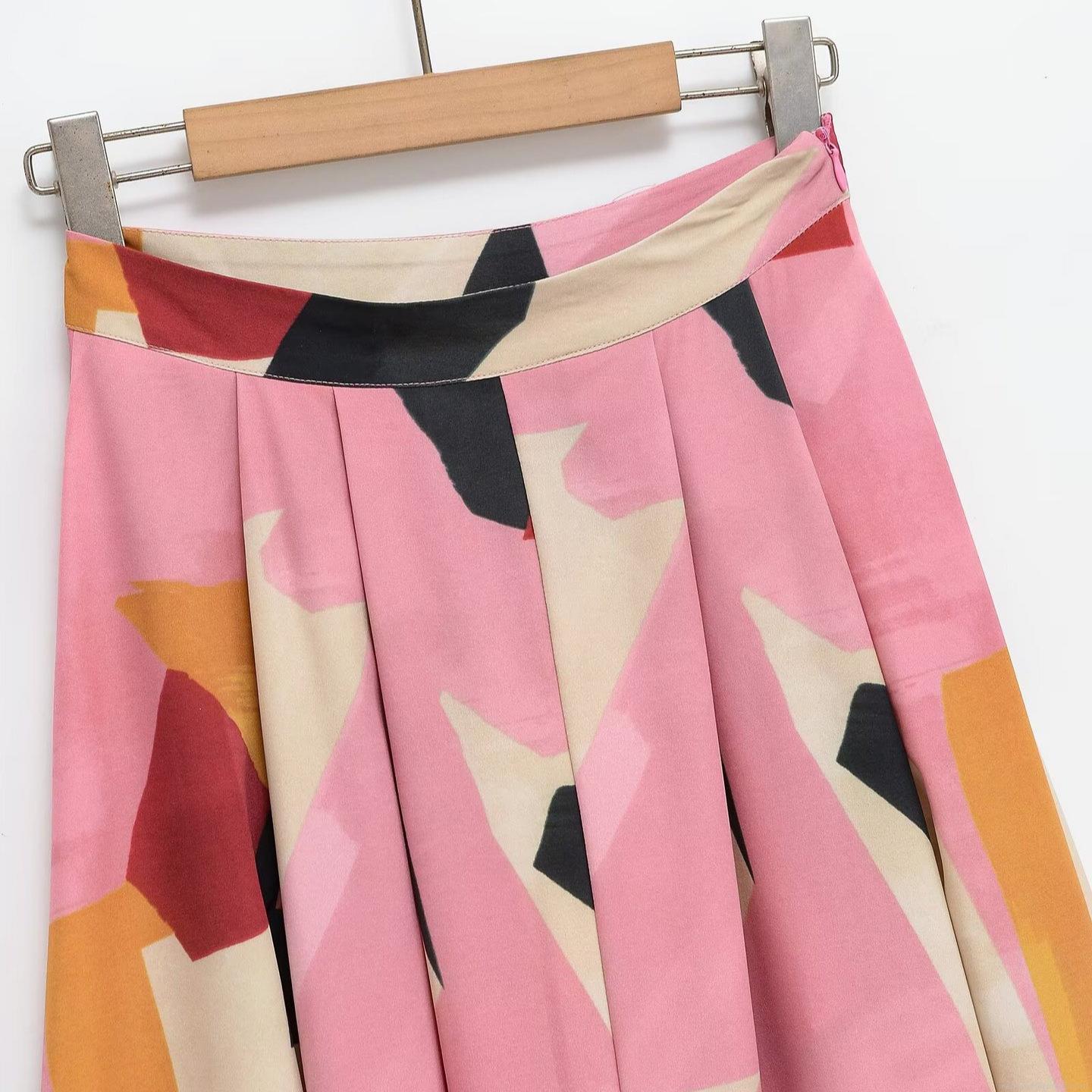 • Women's Elegant High Waist A-Line Midi Skirt Geometric Print Polyester Spandex Pleated Flowy Swing Skirt For Summer Daily Commute Ladies Casual Skirt