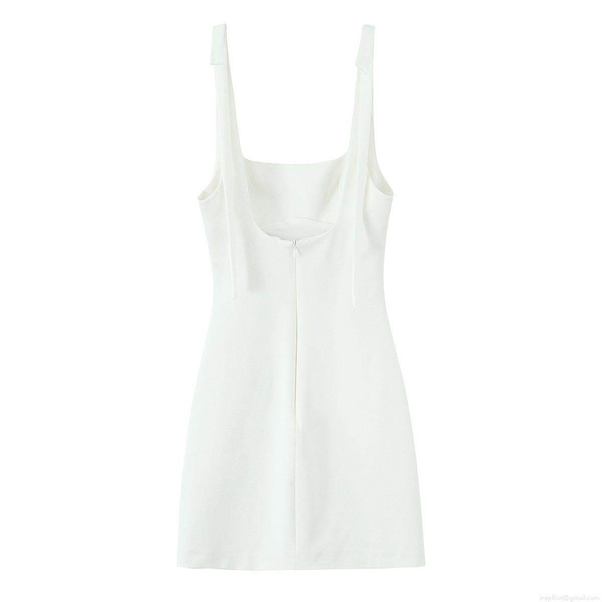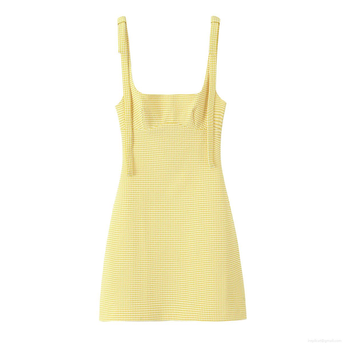 • Women's Elegant Plaid Bow Mini Dress Sleeveless Square Neck Slim Fit Bodycon Backless Zip Dress for Summer Party Socialite Style
