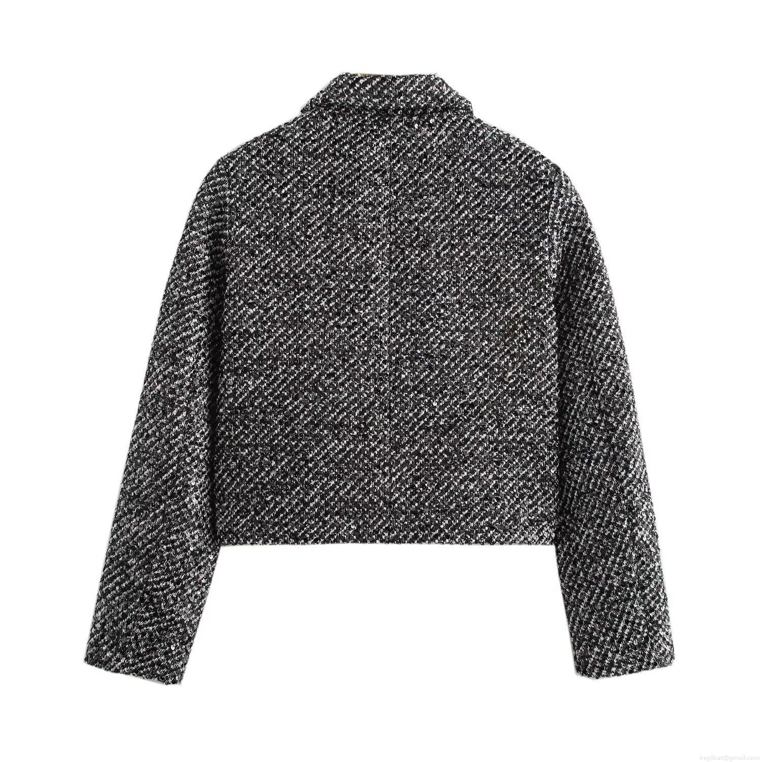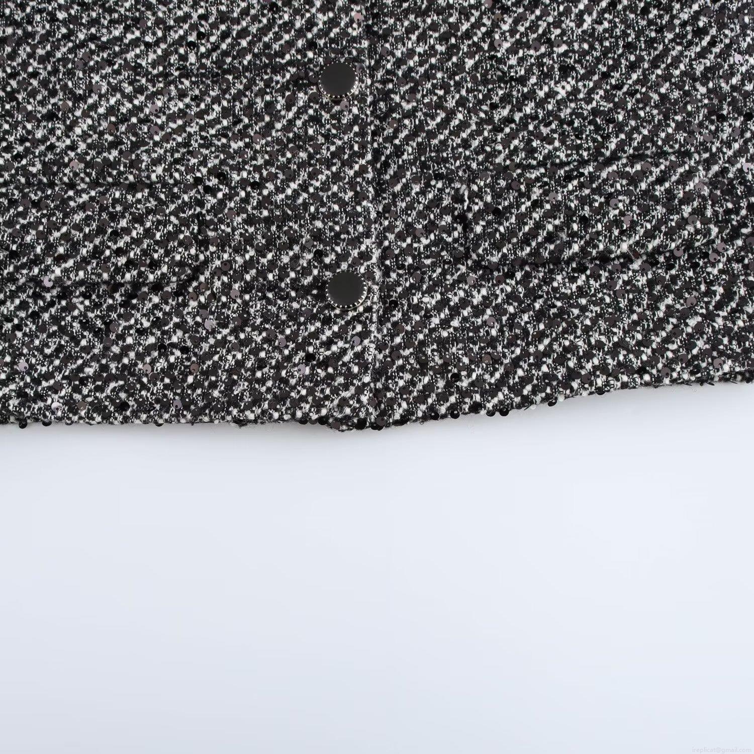• Women's Elegant Sequin Tweed Jacket Vintage Black White Plaid Long Sleeve Short Coat With Decorative Buttons For Autumn Winter Fashion