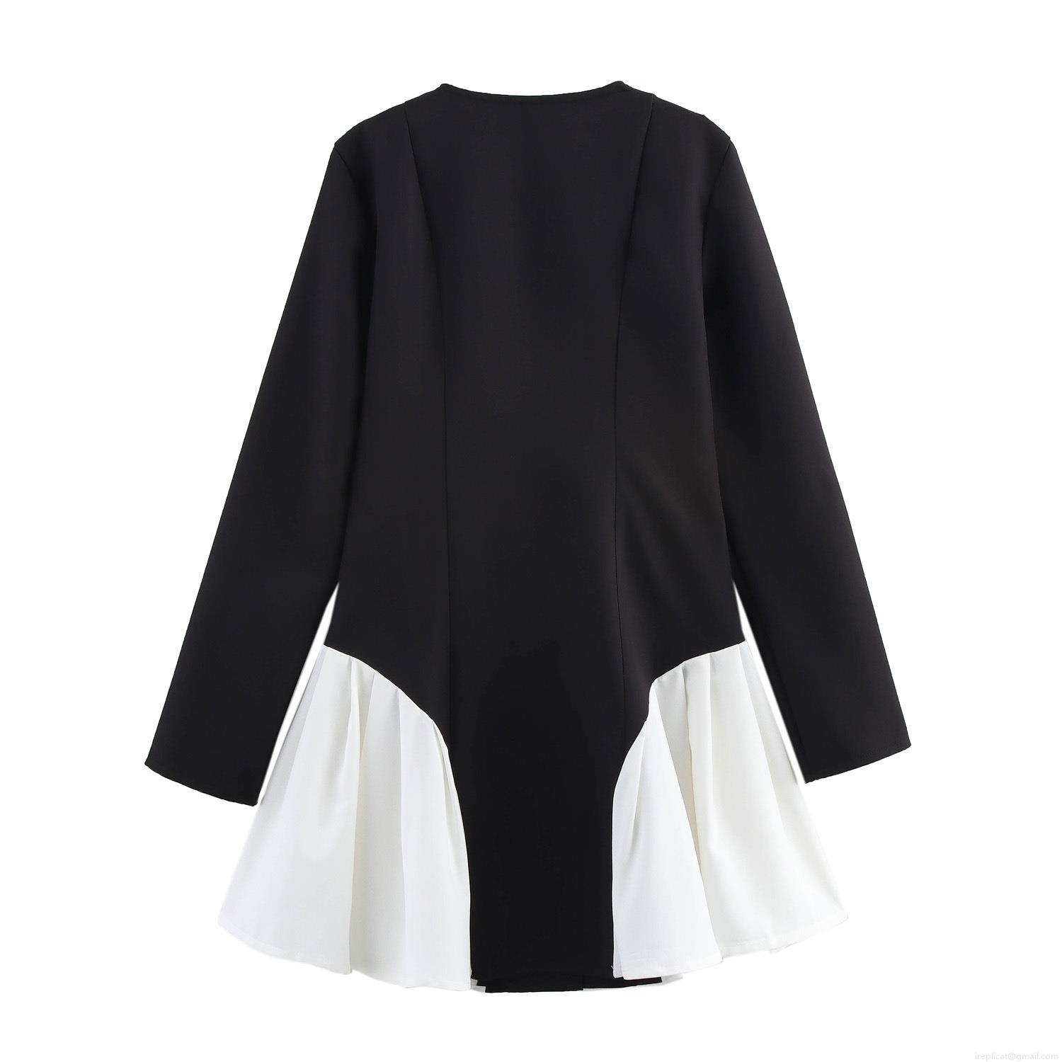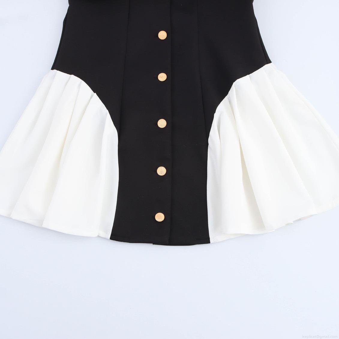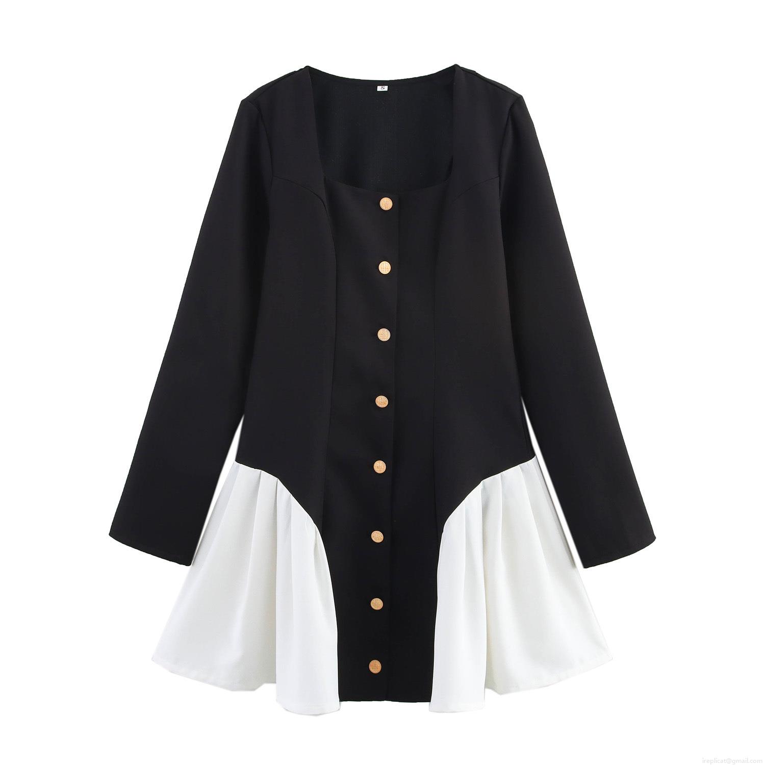 Color Blocking, Square Collar, Gold Buttons, Pleats