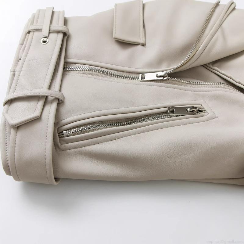 • Women's Fashion Faux Leather Biker Jacket Short PU Leather Moto Coat With Adjustable Belt Asymmetric Zip Outerwear For Streetwear Daily Wear