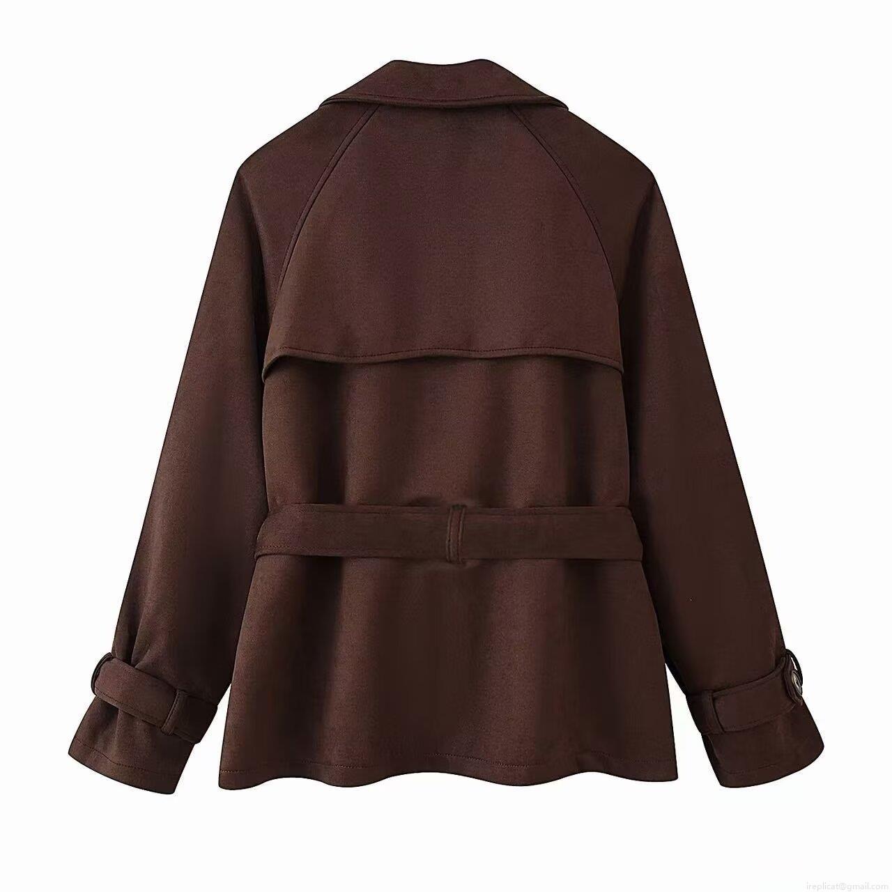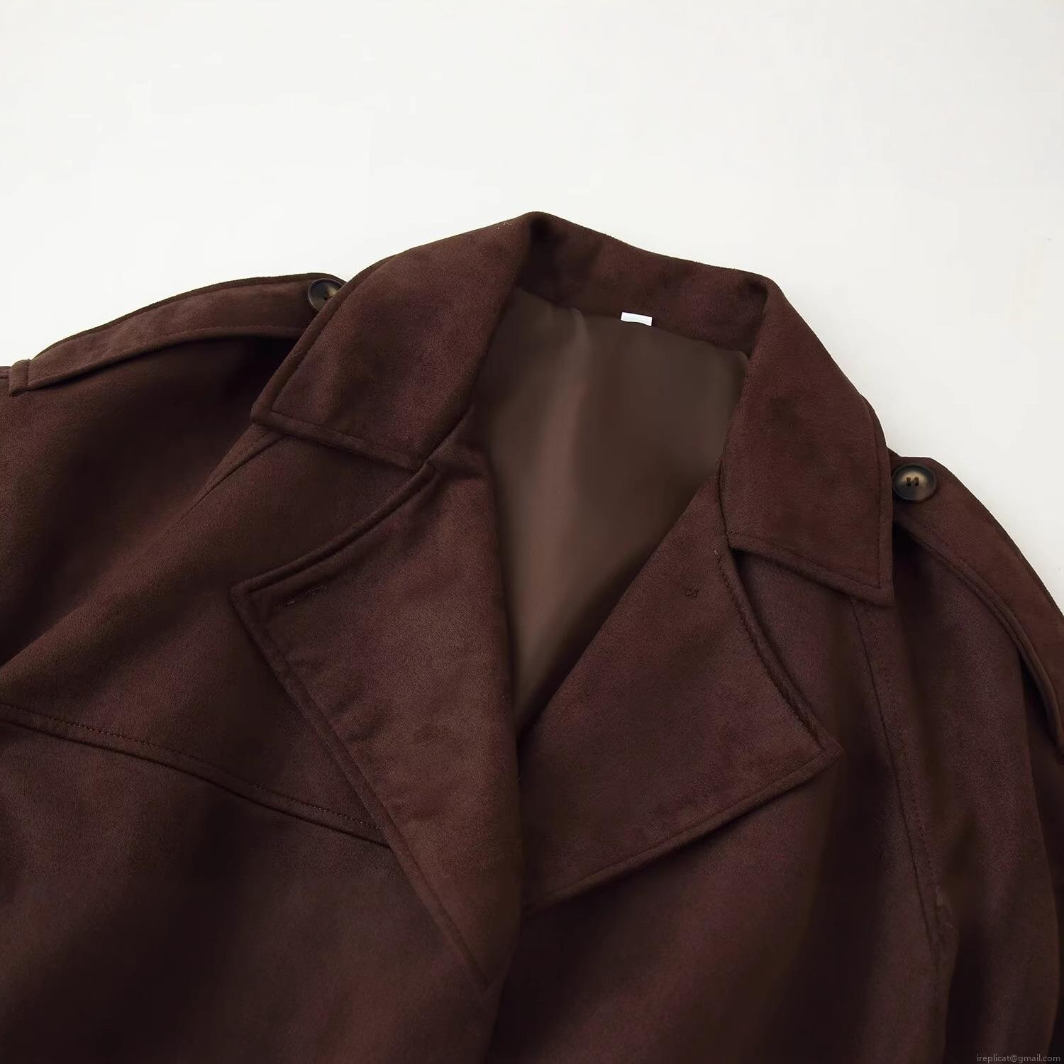 • Women's Fashion Faux Suede Short Jacket Vintage Brown Lapel Belted Long Sleeve Coat Solid Color Autumn Winter Outerwear For Ladies Casual Streetwear Styling