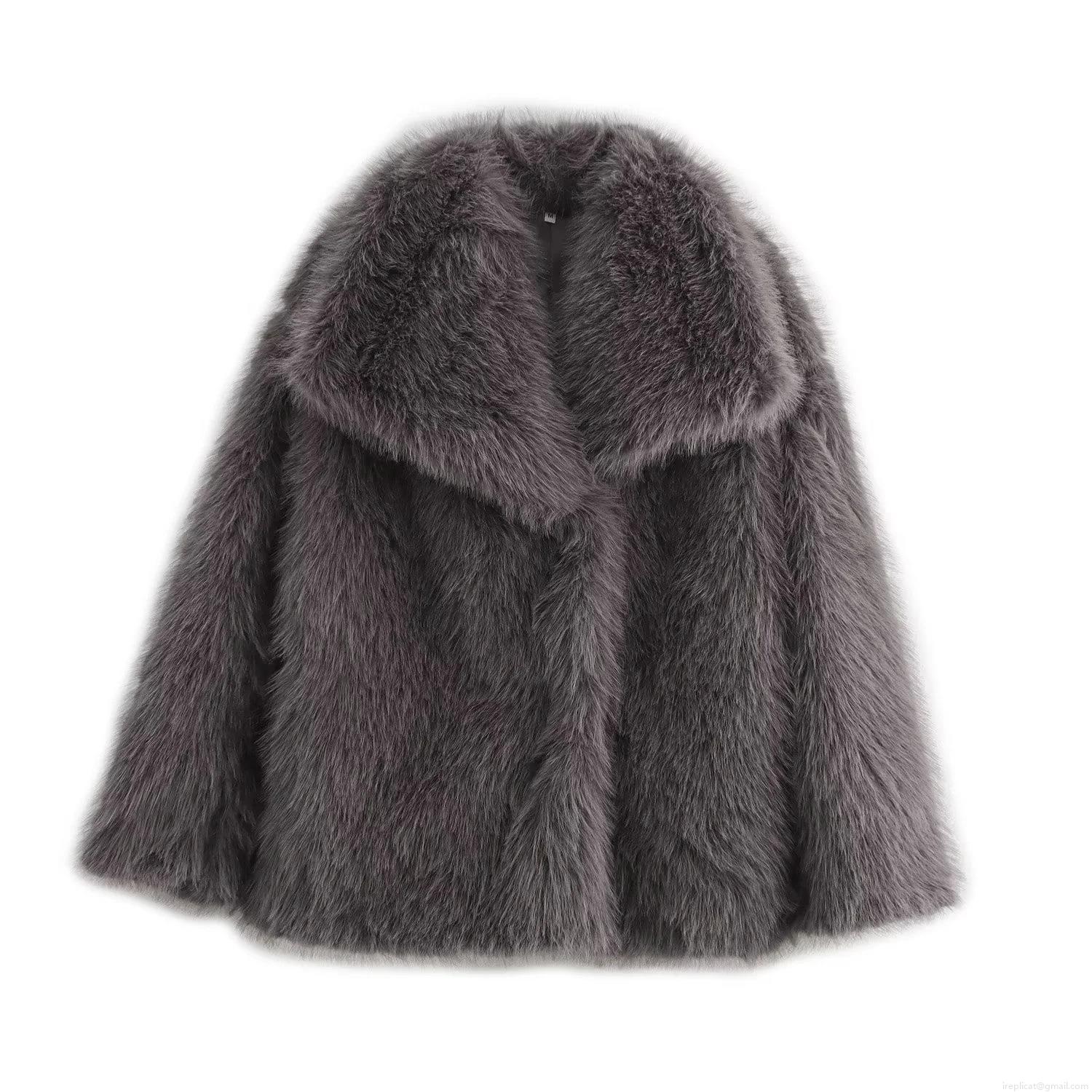 • Women's Faux Fur Jacket Winter Warm Thick Polyester Coat Big Lapel Streetwear Elegant Solid Color Luxury Outerwear For Ladies Party Casual