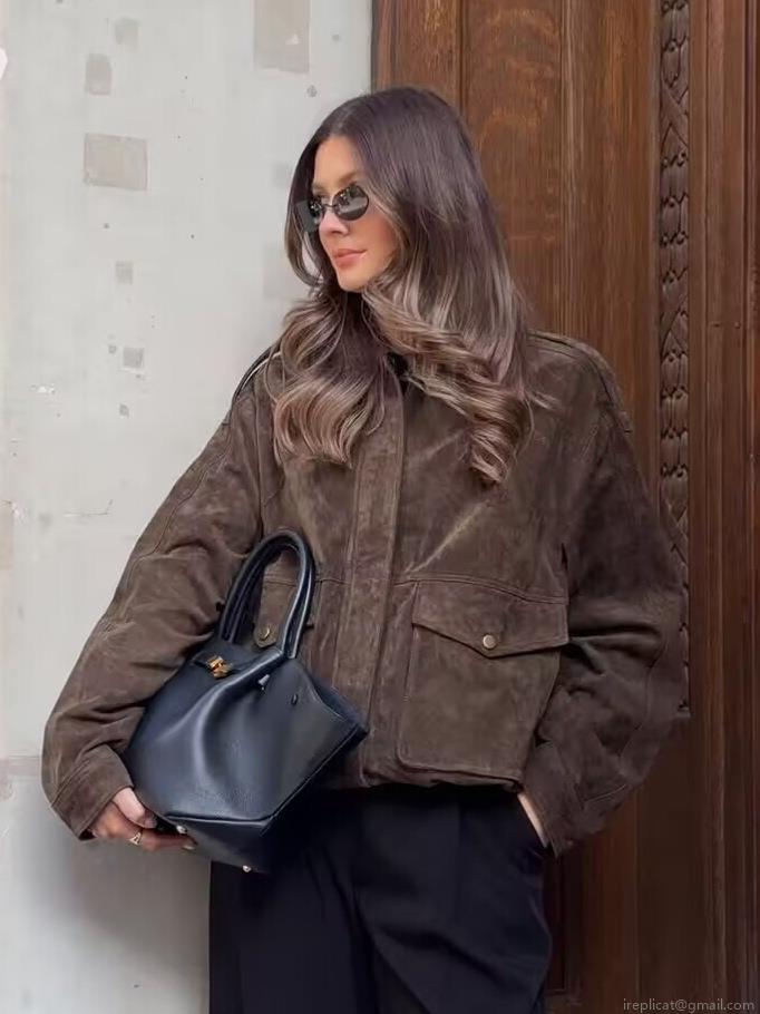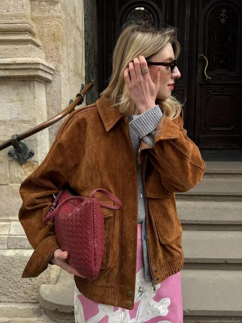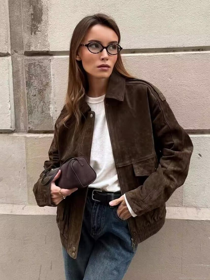 • Women's Faux Suede Bomber Jacket Loose Fit Lapel Zip Up Outerwear Vintage Streetwear Fall Spring Coat for Ladies Solid Color Casual Jacket