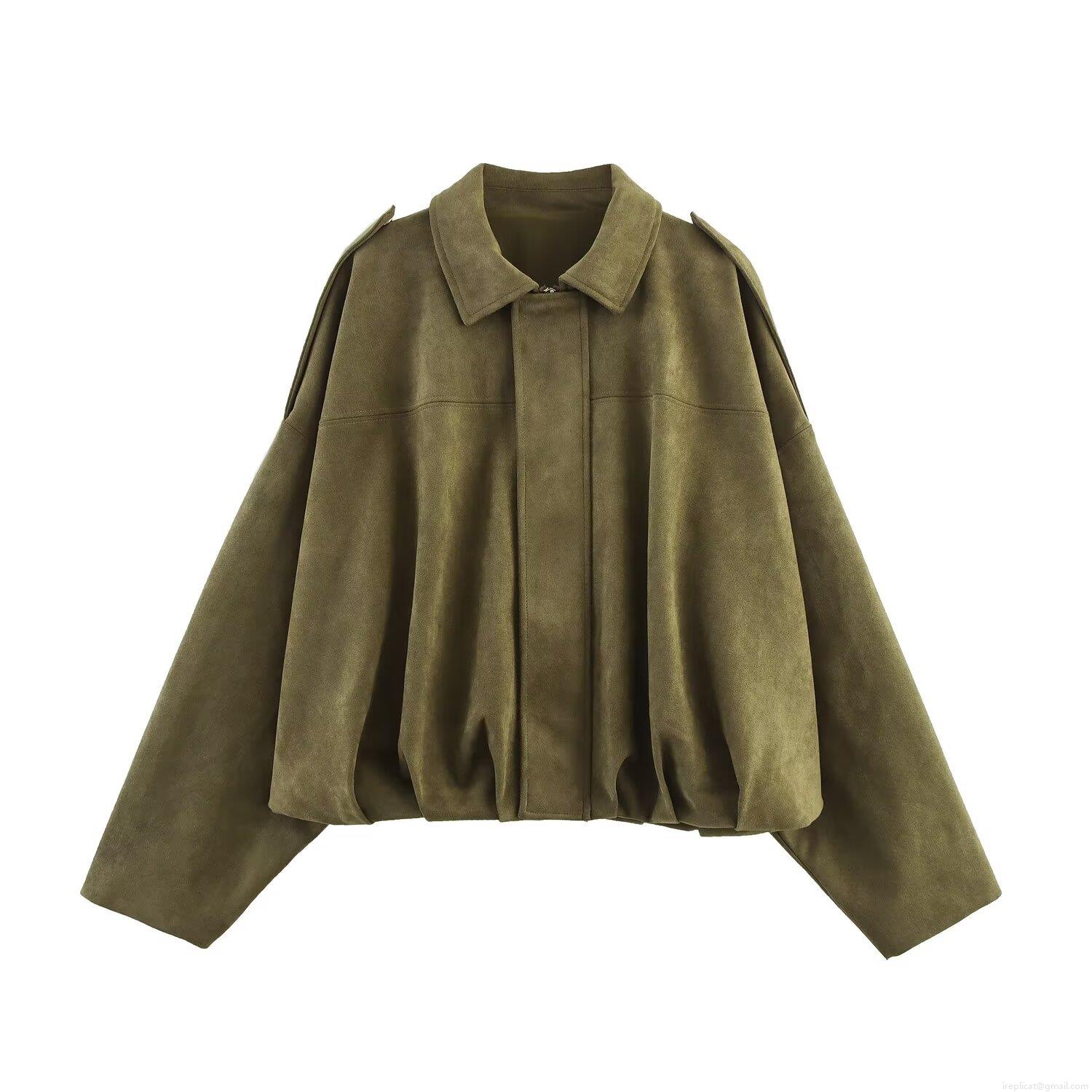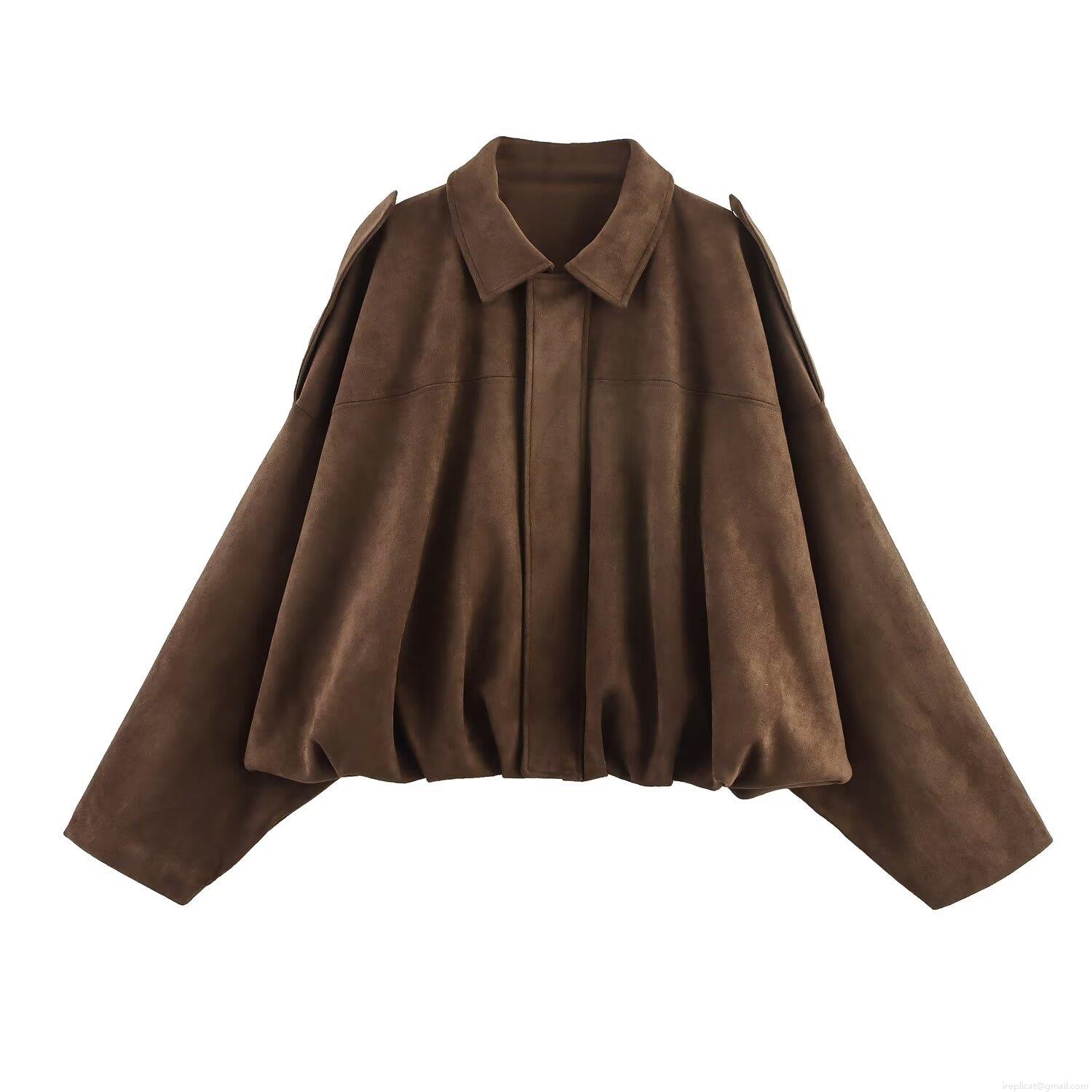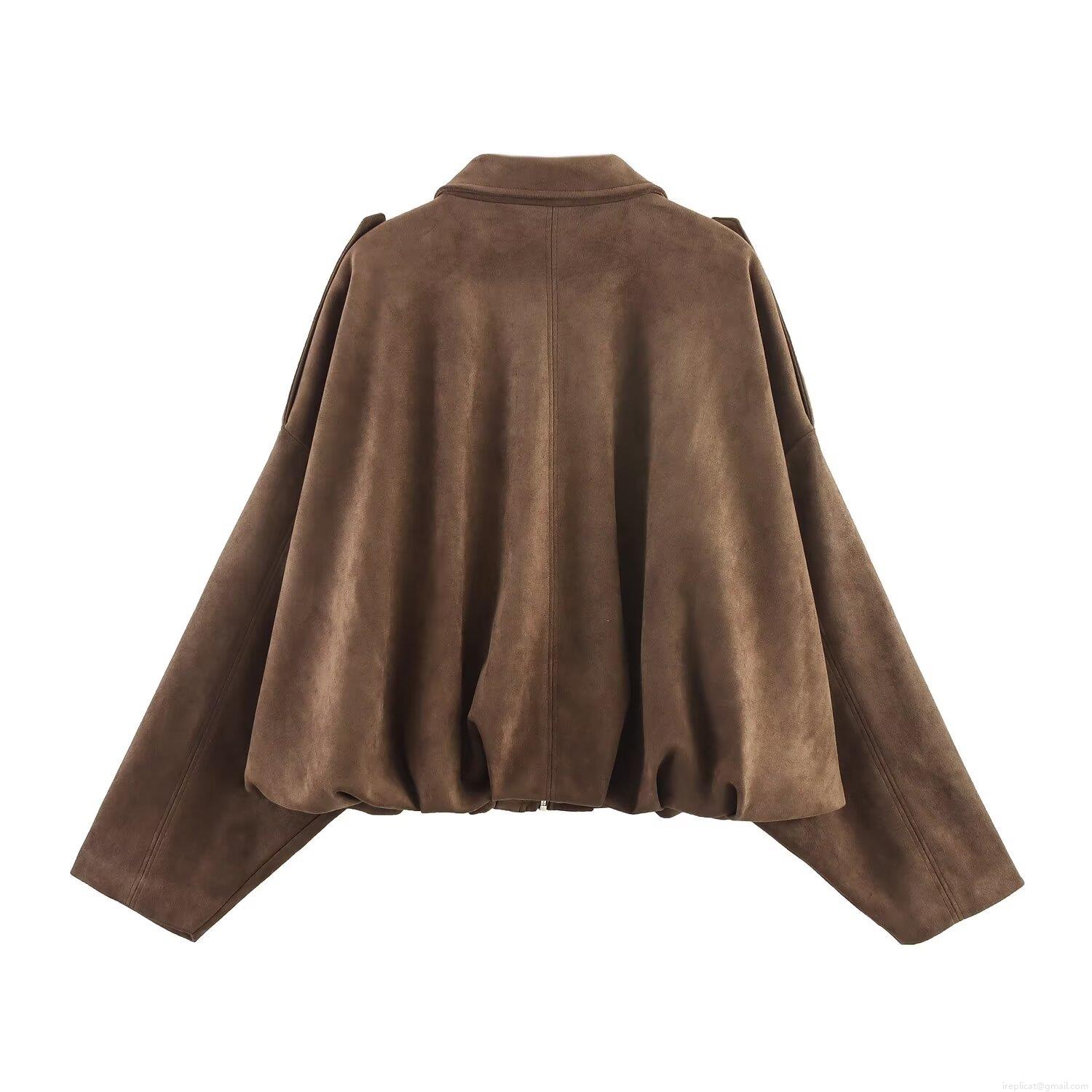 • Women's Faux Suede Bomber Jacket Loose Oversized Batwing Sleeve Short Lapel Coat Solid Color Retro Streetwear Outerwear For Women