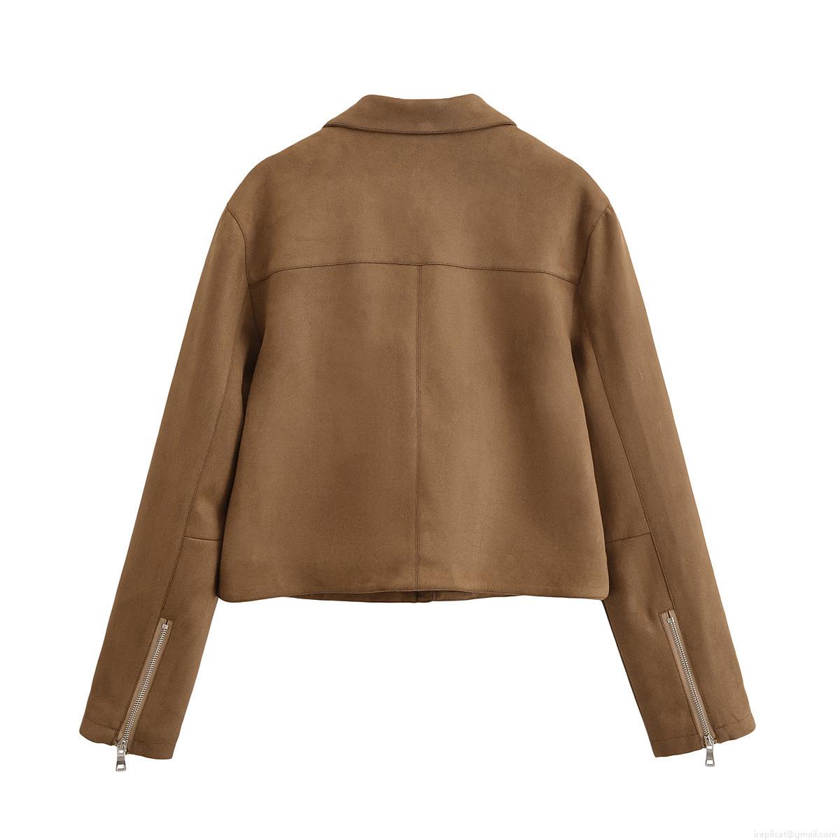 Solid Color, Metal Zipper, Suede Texture, Lapel Design