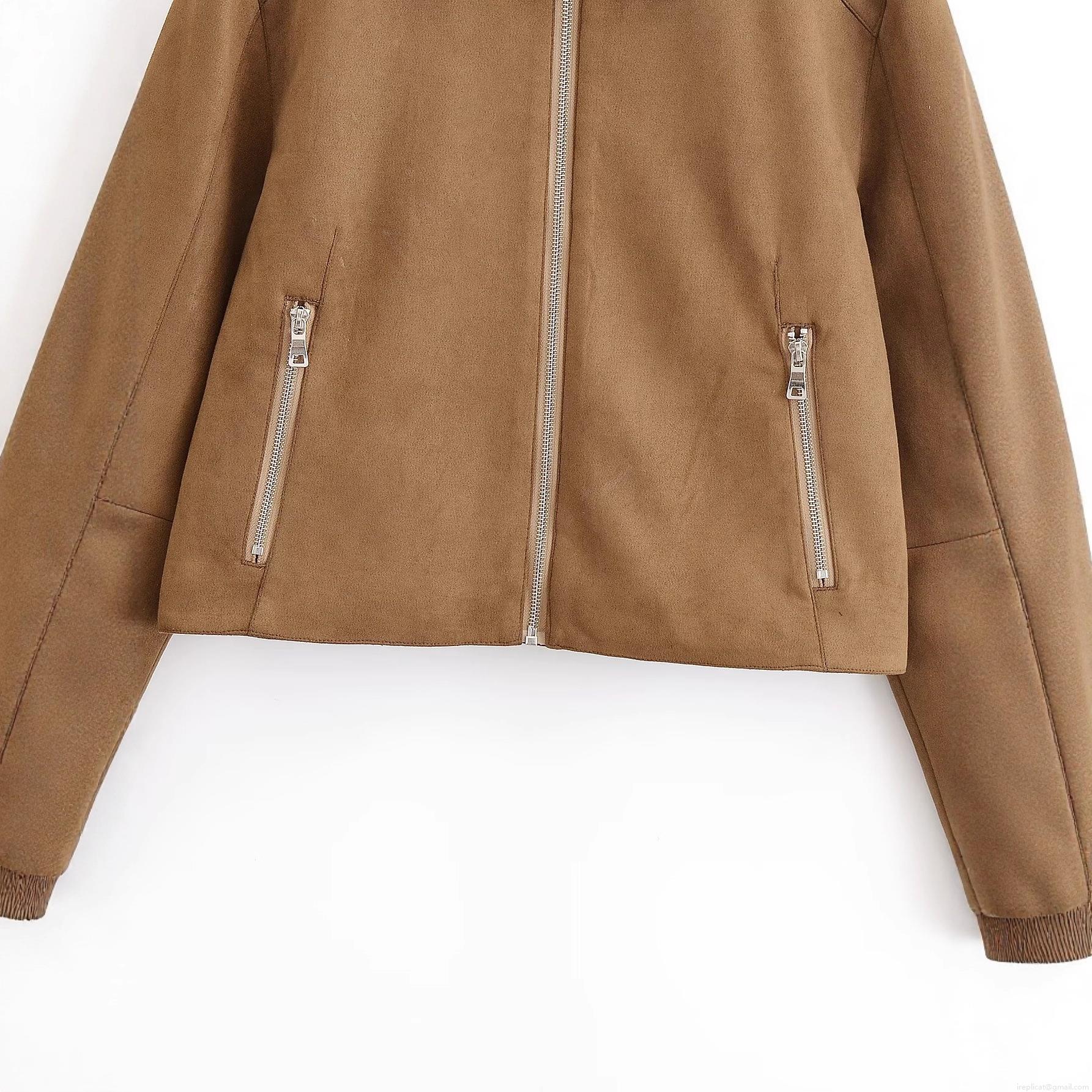 • Women's Faux Suede Jacket Vintage Solid Color Full Zipper Lapel Collar Long Sleeve Outerwear Fashion Streetwear Short Coat Autumn Winter