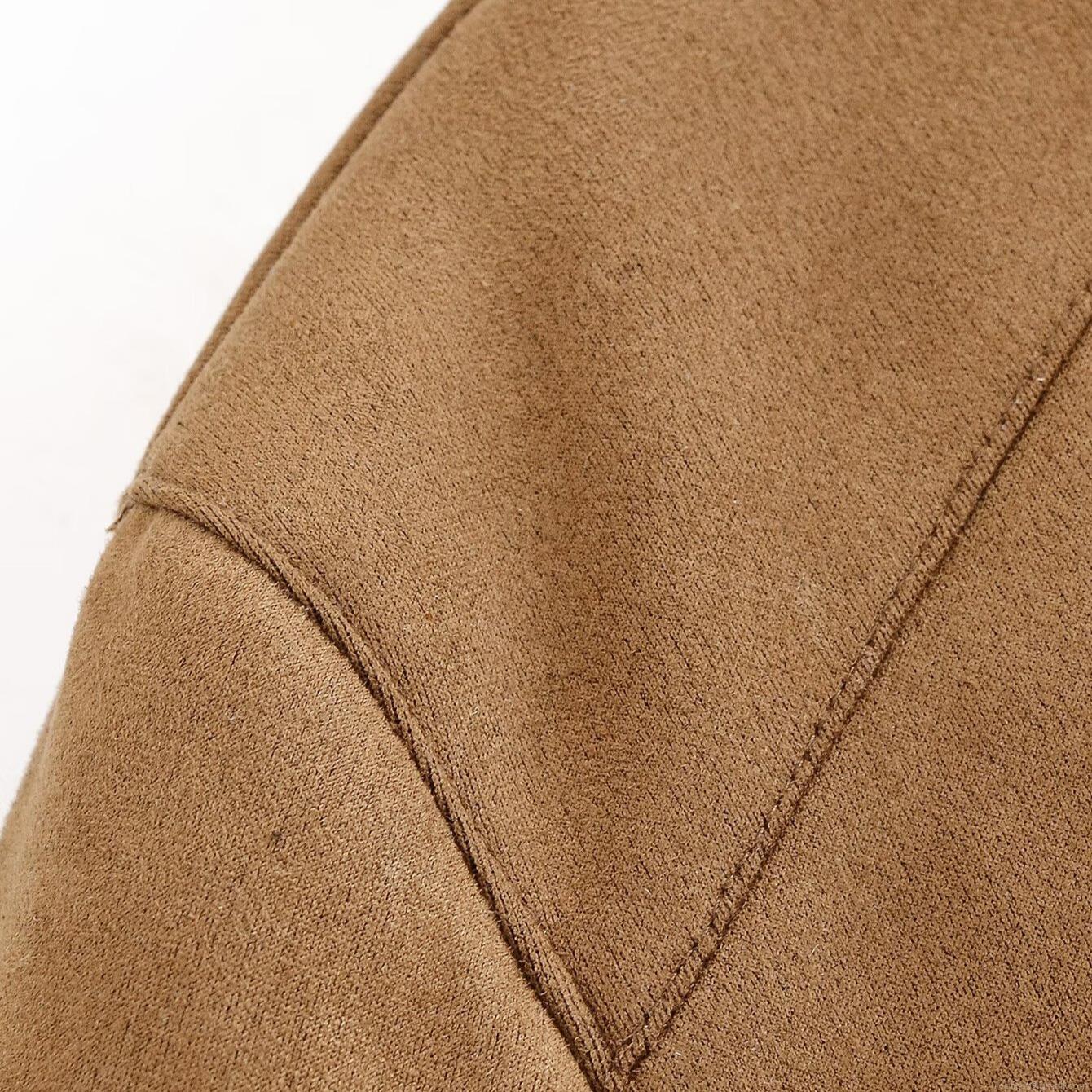 Women's Faux Suede Jacket Vintage Solid Color Full Zipper Lapel Collar Long Sleeve Outerwear Fashion Streetwear Short Coat Autumn Winter