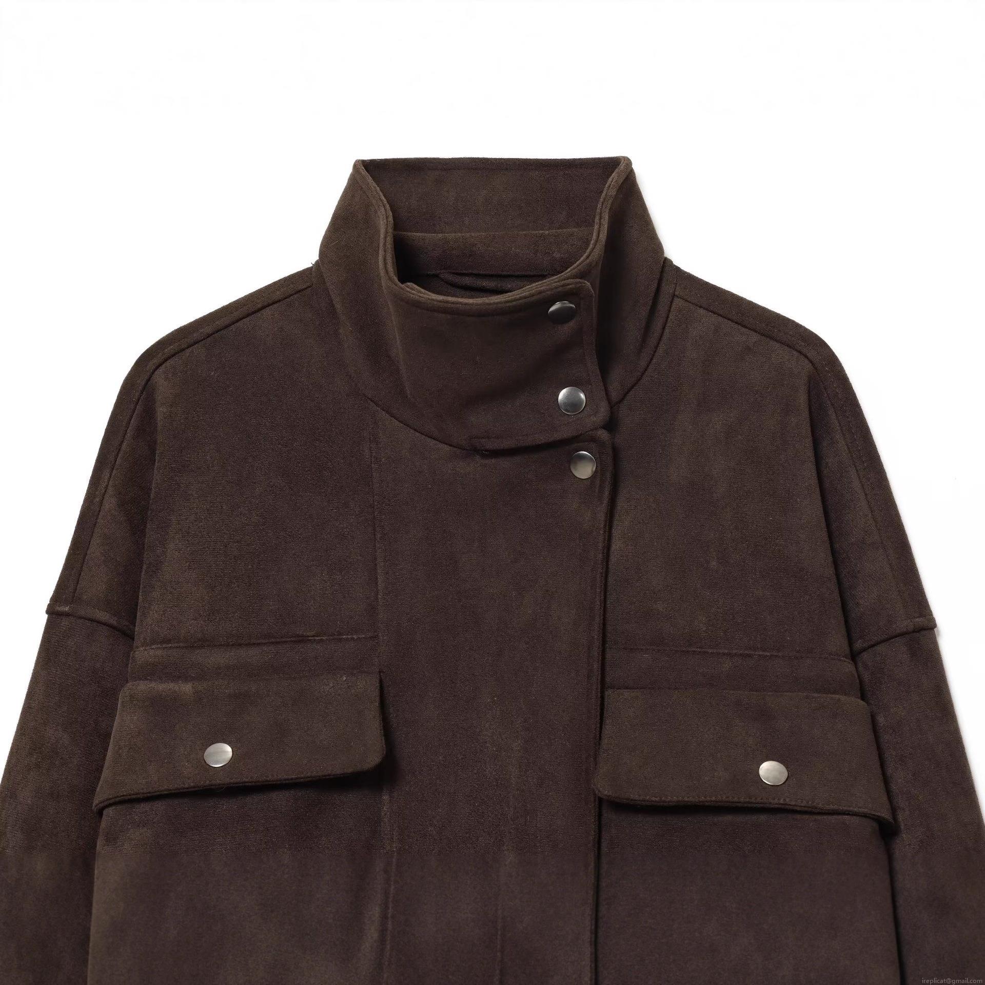• Women's Faux Suede Jacket Vintage Streetwear Solid Color Long Sleeve Loose Baseball Uniform With Large Pockets And Metal Buttons Fall Winter Casual Fashion Coat