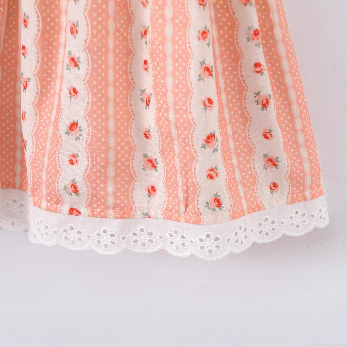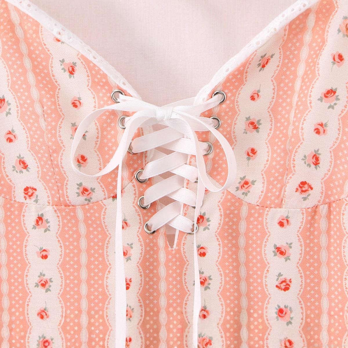 Women's Floral Print Short Sleeve Mini Dress Sweetheart Neck Lace-Up Corset Pink Rose Pattern Dress With White Lace Hem Sweet Vintage Style Casual Summer Dress