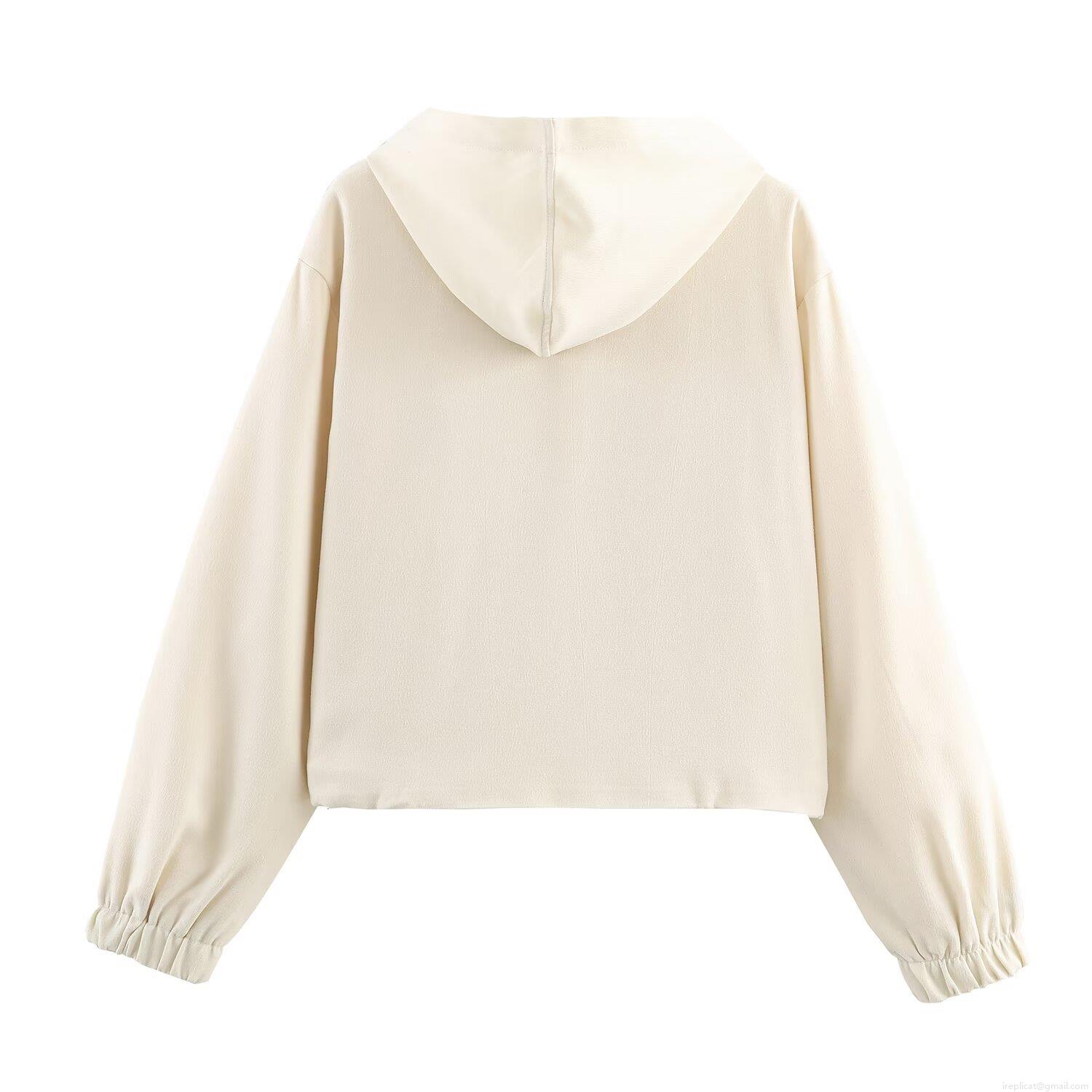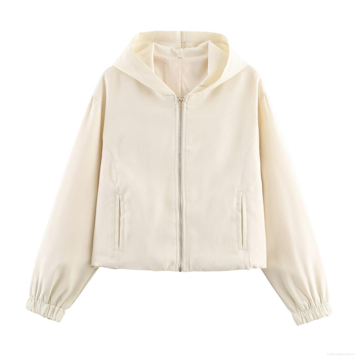 Solid Color, Hood, Metal Zipper, Cuffs