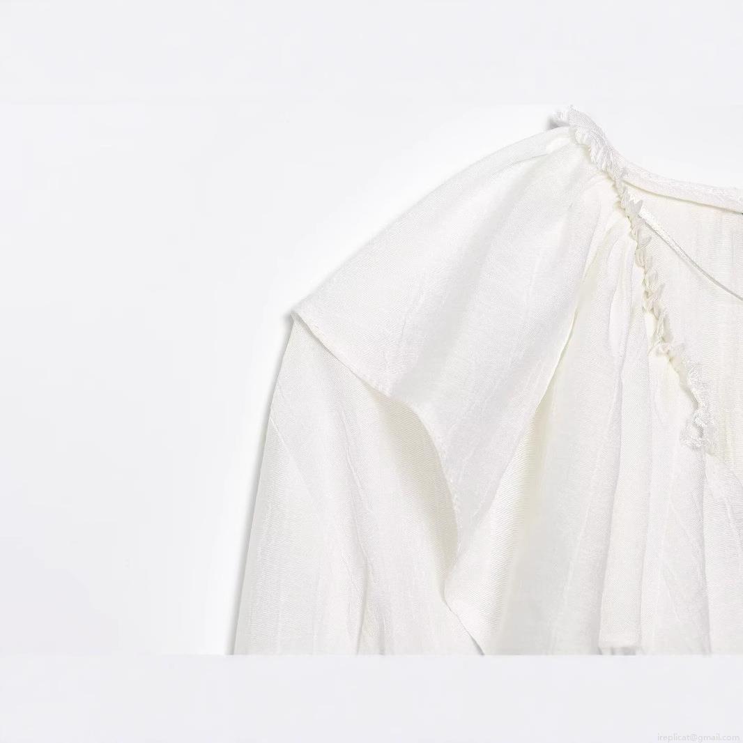 • Women's French Vintage V Neck Ruffle Long Sleeve Blouse Top Solid Color Loose Fit Pullover Peach Skin Crepe Shirt for Summer Streetwear