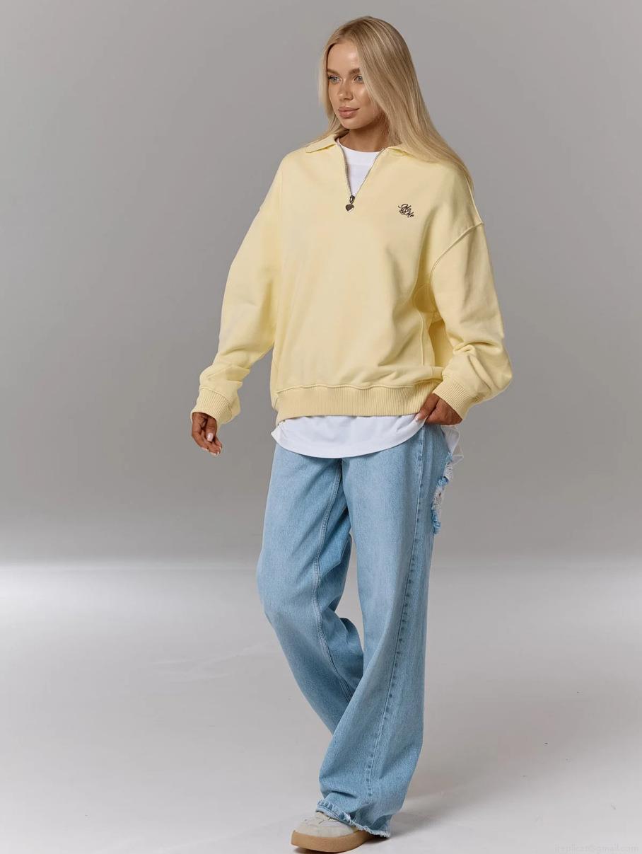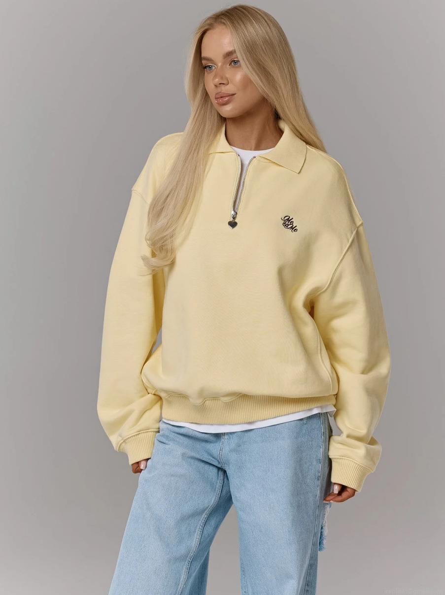 • Women's Half-Zip Sweatshirt Cotton French Terry Loose Polo Collar Long Sleeve Pullover Letter Embroidery Streetwear Casual Jumper Top For Women