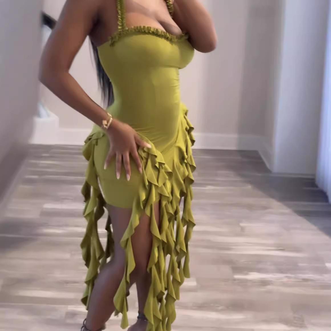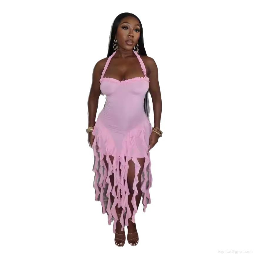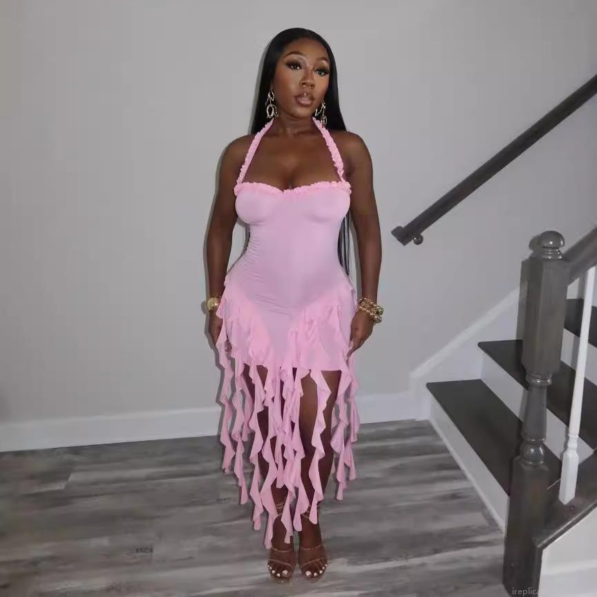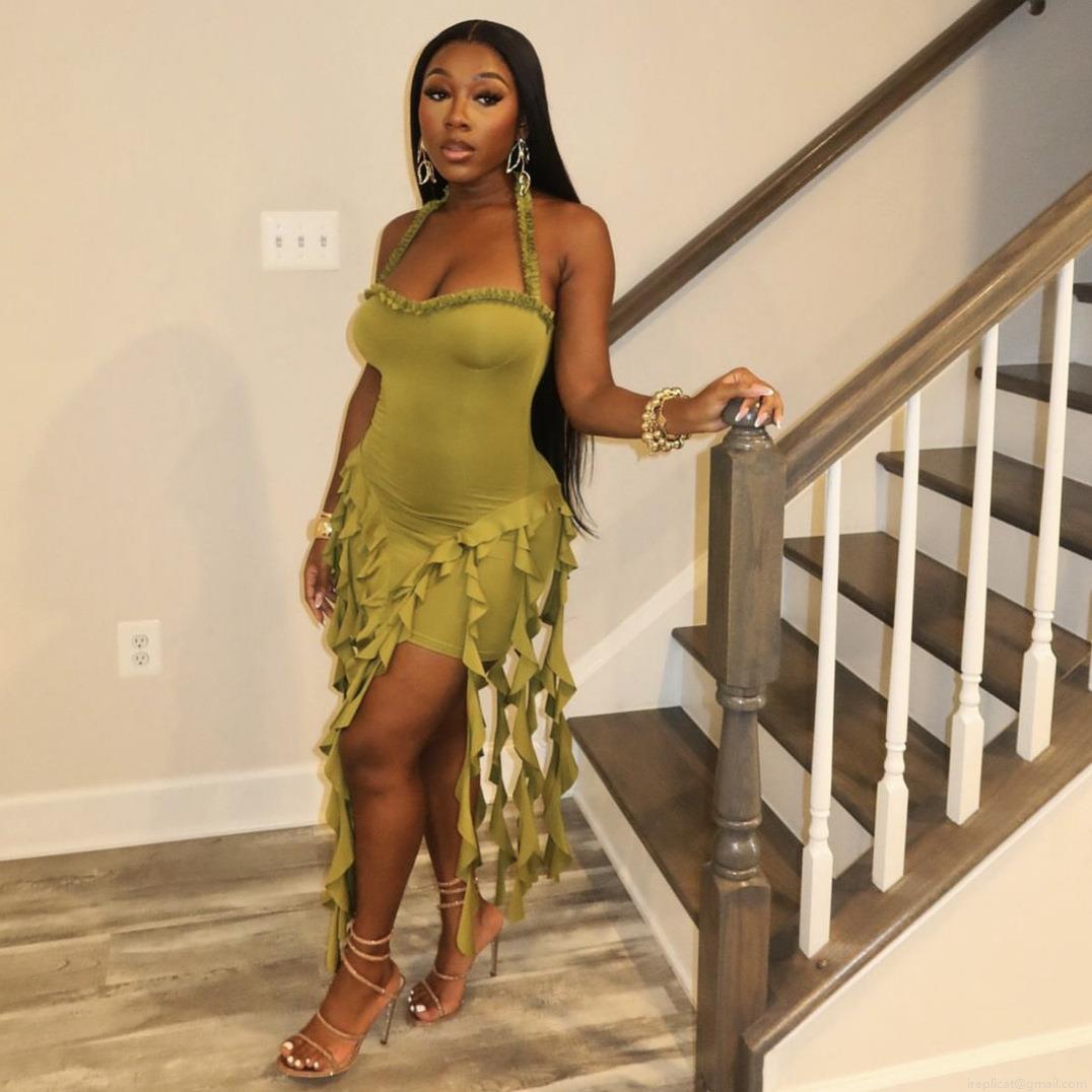 • Women's Halter Neck Ruffle Fringe Mini Dress Sexy Backless Bodycon Dress Sleeveless Solid Color Polyester Spandex Party Clubwear Dress for Women