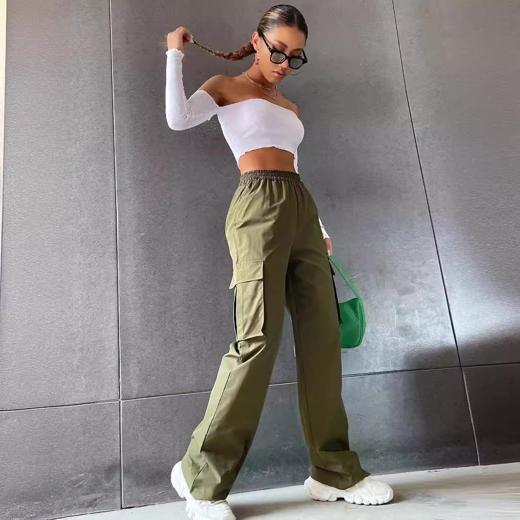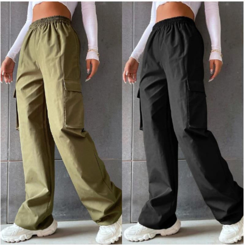 • Women's High Waist Cargo Pants Wide Leg Straight Trousers Loose Casual Multi-Pocket Utility Pants Solid Color Streetwear Polyester Blend Fashion Bottoms For Daily Wear