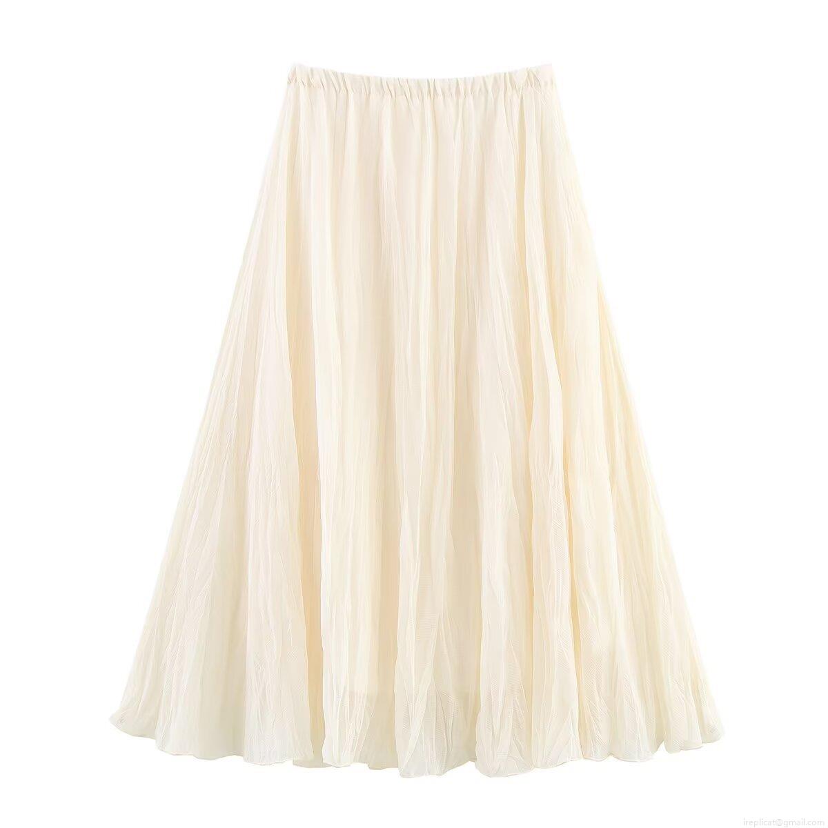 5 stars – This high-waisted pleated maxi skirt is perfect for spring and summer! The elastic waist is super comfy and fits well without being tight. The A-line cut flows beautifully and flatters my figure so much. Fabric is lightweight, breathable and flowy, great for vacation and daily streetwear. Solid color is easy to match with any top. Well-made, true to size, high quality and very elegant. Love it so much, highly recommend!