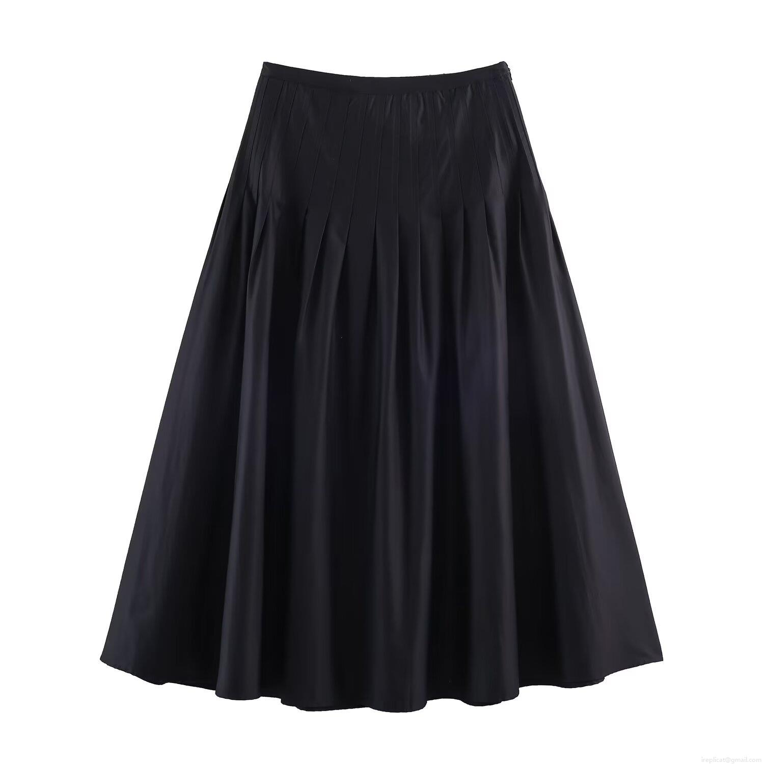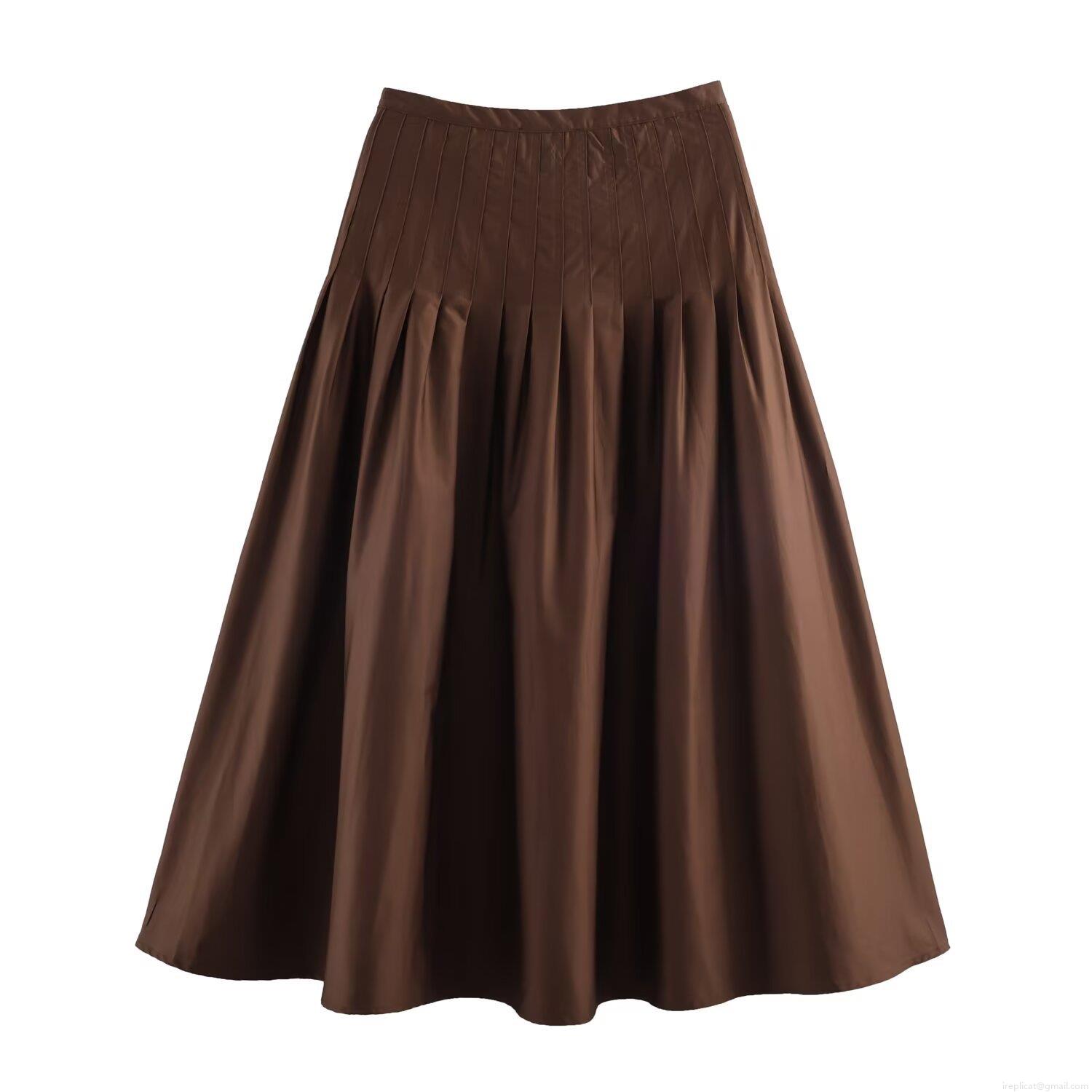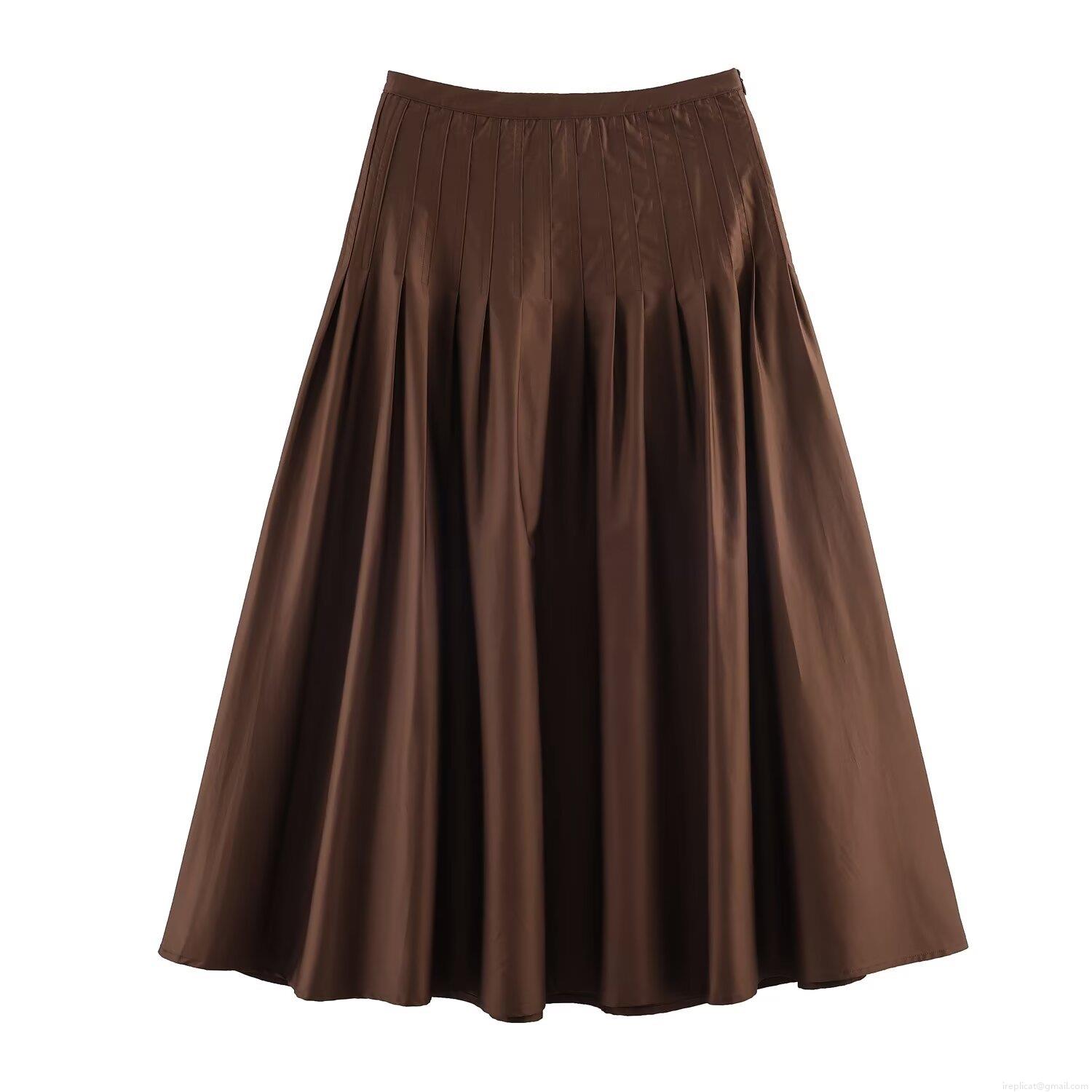 • Women's High Waist Pleated Midi Skirt Casual Solid Color A-Line Satin Polyester Skirt for Streetwear Summer Fashion